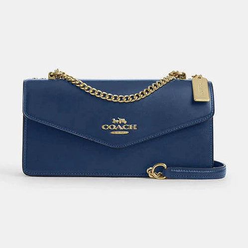 Coach Klare Envelope Crossbody Bag Calf Leather-Gold-Deep Blue