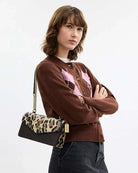 The Coach Klare Envelope Crossbody Bag expertly blends signature canvas with striking leopard print pebbled leather for a bold, fashionable statement. Its compact envelope design offers a sleek silhouette while providing convenient crossbody functionality for hands-free carrying. This bag balances distinctive style with practical usability, making it a versatile accessory for both casual outings and refined occasions.