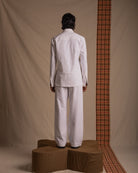 Relaxed button-down shirt with diagonal box pleat and brown checks detailing.