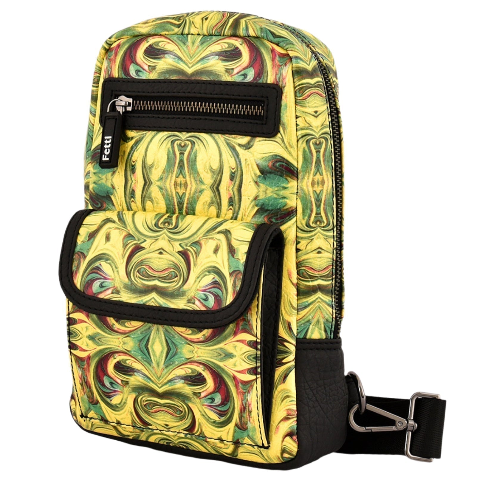 Whether you are commuting to work, traveling, or simply heading out for a casual day with friends, the Kosmic Immersion Sling Bag fits seamlessly into your life. Its compact size makes it easy to wear crossbody, allowing for hands-free convenience while you go about your day.