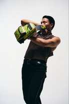 The Cosmic Immersion print explodes over a Helios-yellow base, melting into soothing tints of green, and bold strokes of red erupt like solar flares. This cosmic fluid artwork celebrates the energy of light, movement, and awakening. Helios is a wearable ode to light, life, and fearless self-expression.