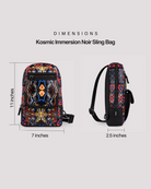 The Cosmic Immersion print explodes over a noir-black base, with bold hues of blue, red, and yellow mimicking the magic of the sky.