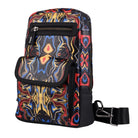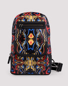 The Cosmic Immersion print explodes over a noir-black base, with bold hues of blue, red, and yellow mimicking the magic of the sky.