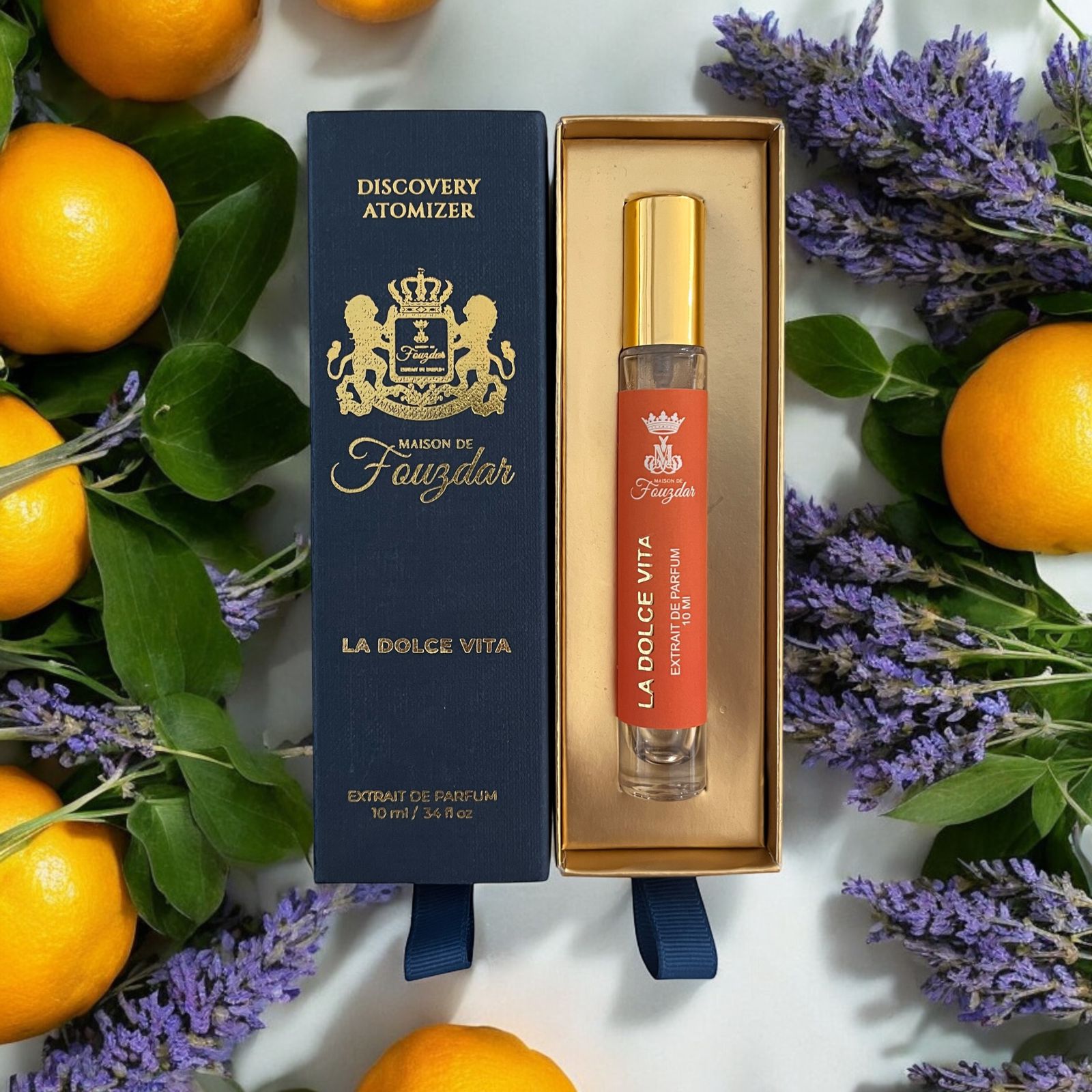 The pinnacle of luxury and sophistication at MAISON De Fouzdar is exemplified in our exquisite fragrance: La Dolce Vita. This masterpiece, a radiant blend of oriental and floral notes, captures the essence of a life well-lived, echoing the charm and elegance that our brand is renowned for.