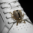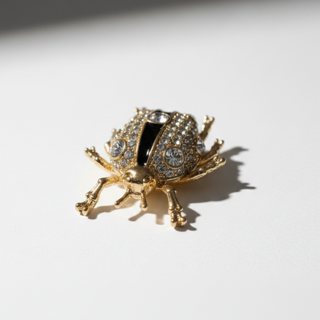 Crafted with a gold-tone metal base, glossy black enamel panels, and precisely set crystal accents, the ladybug design catches light from every angle while maintaining a clean, balanced look on-foot. The compact shape ensures the charm enhances your sneaker rather than overpowering it.