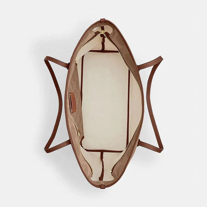 Coach Large City Tote Bag In Maxi Signature Canvas Signature Canvas-Gold-Tan-Brown