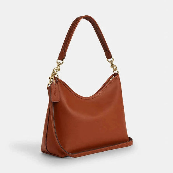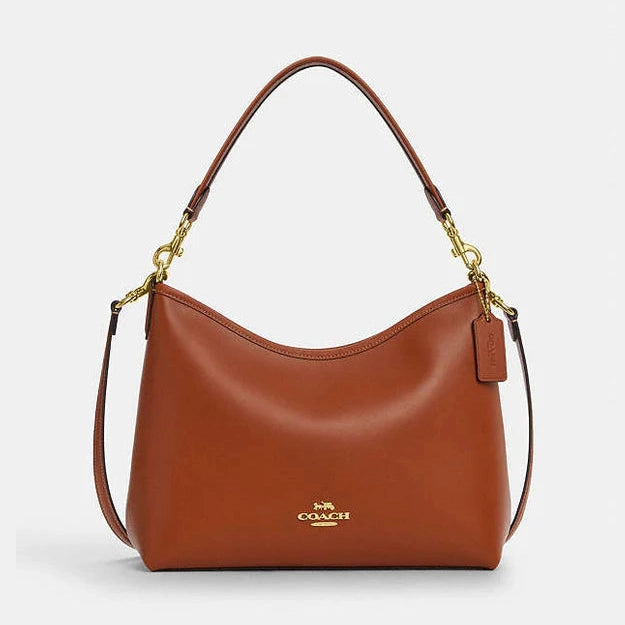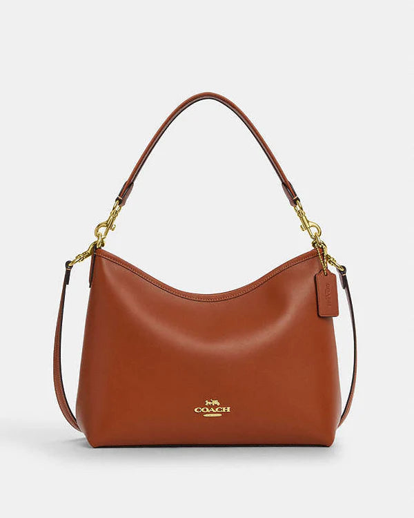 Crafted from smooth leather in a warm gold-tan hue, the Coach Laurel Shoulder Bag offers timeless elegance paired with practical design. Its refined silhouette and adjustable strap ensure comfortable wear, while the polished finish adds a sophisticated touch. Ideal for carrying essentials with ease, this shoulder bag seamlessly blends luxury with everyday functionality.