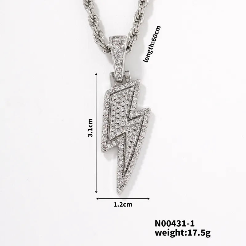 Built for bold style and everyday strength, this men’s pendant necklace blends fitness-inspired attitude with hip-hop and rock aesthetics. Crafted from durable 304 stainless steel with copper K-gold and rhodium plating, it delivers long-lasting shine and a premium finish. The lightning pendant symbolizes power and energy, highlighted with zircon inlay for a sharp, standout look.