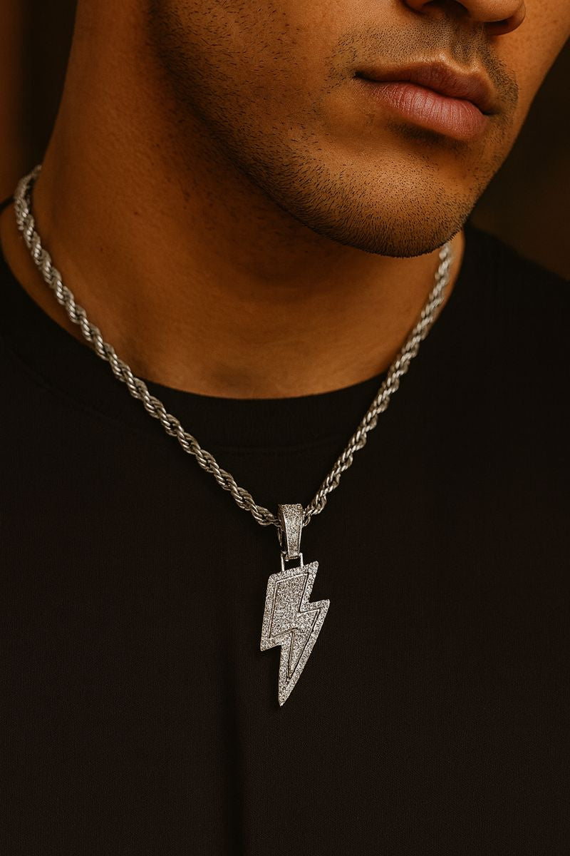A powerful lightning pendant necklace made for men who carry confidence, energy, and bold style.