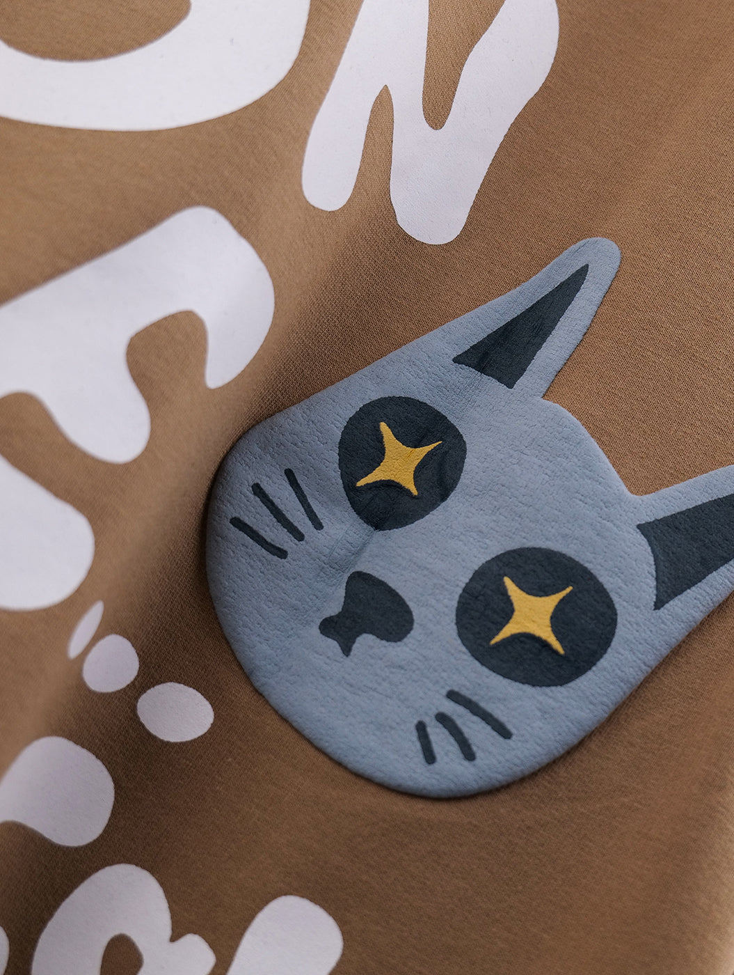 Lil' CAT & CAKE Beige Graphic Drop Shoulder Oversized T-Shirt