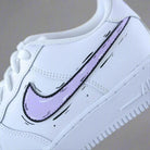 Put a fun spin on your sneaker game with the Lilac Comic Swoosh AF1. These Nike AF1s feature a vibrant lilac swoosh and a comic book-inspired effect.