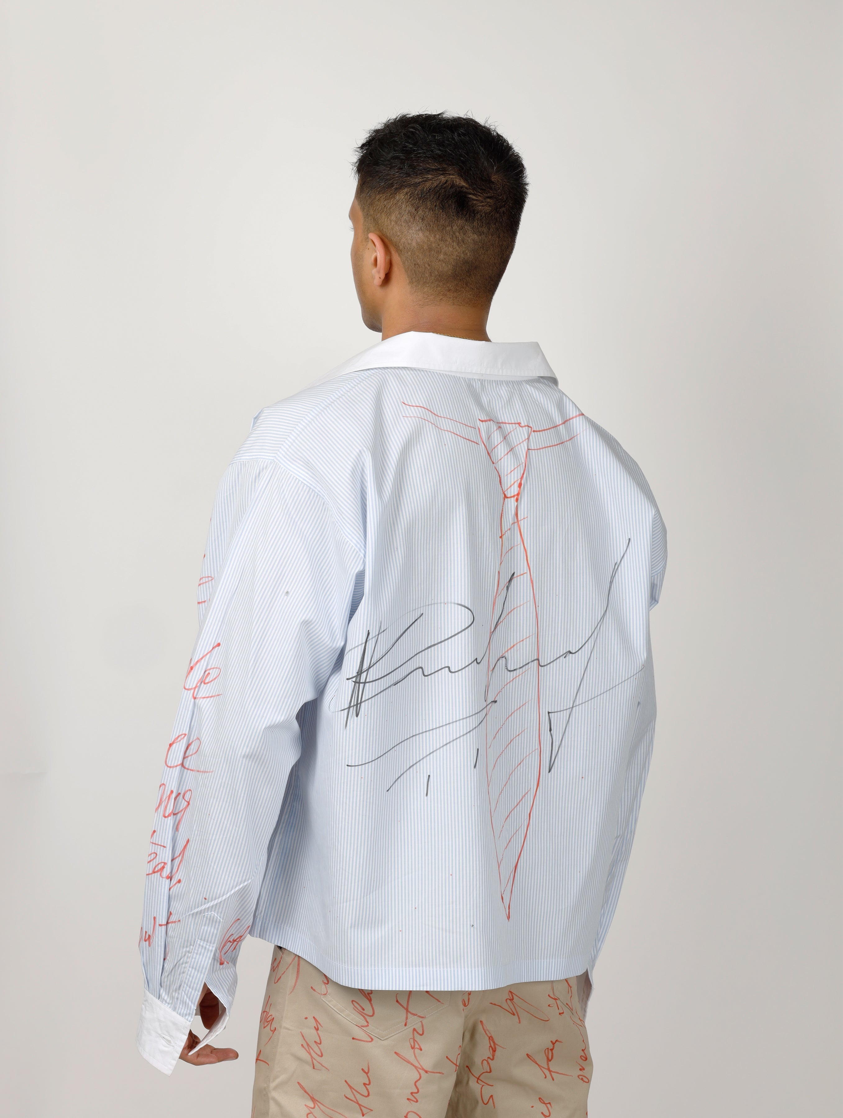 Hand done artwork featured on the front of our shirt. Made like a jacket with zipper.