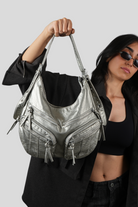 The MANACA Ironclad Bag is a fortress disguised as a streetwear essential. Built with a crinkled metallic finish and loaded with zippered compartments, it’s designed for those who carry heavy energy and heavier style. Every pocket is purpose-built, blending utility with raw street edge. With its sculpted silhouette and bold hardware, Ironclad isn’t just a bag—it’s your armor for the urban battlefield.