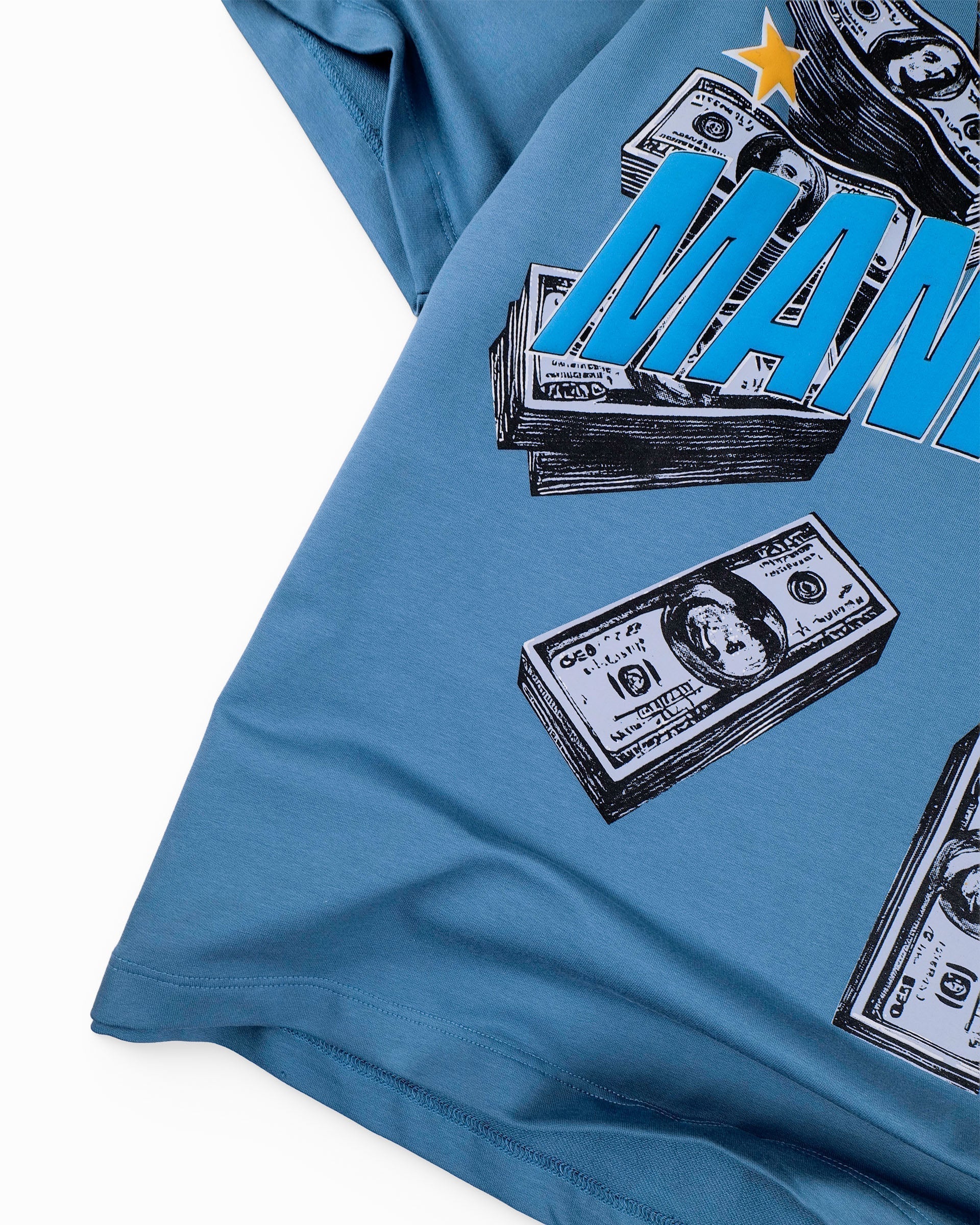 Featuring a vibrant, hand-drawn graphic of cascading stacks of cash and bold typography, this graphic tee feels both modern and aspirational—perfect for trend-savvy individuals into Y2K-inspired and oversize styles.
