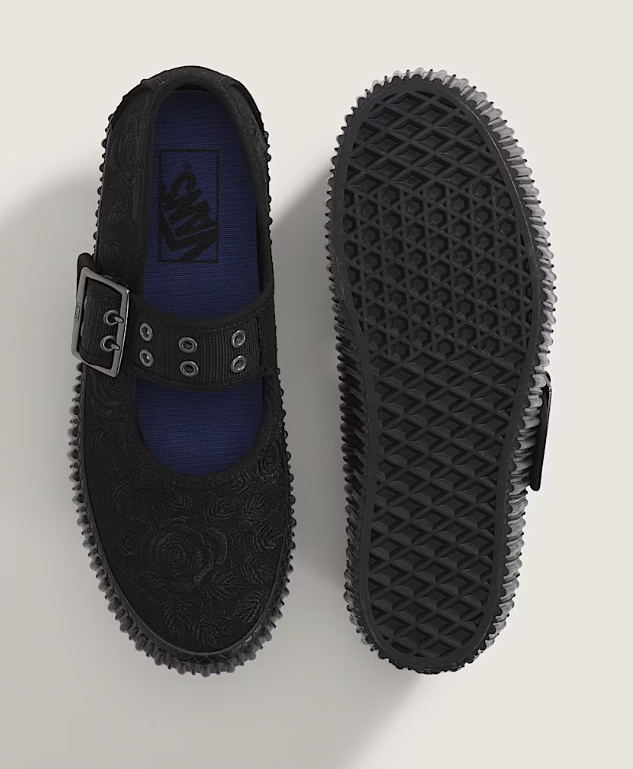 The Vans Mary Jane Creeper Shoe Spooky Black puts a playful twist on a rebellious classic, blending the vintage charm of a Mary Jane strap with the bold edge of creeper styling. The upper comes in deep black suede with a soft yet sturdy feel, contrasted by subtle “spooky” details that give it a seasonal, gothic-inspired character. The strap with buckle closure adds retro appeal while ensuring a secure fit, and the tonal stitching emphasizes the shoe’s structured design. A chunky creeper sole fused with Vans’ iconic waffle tread provides both elevated style and dependable traction, making it equally functional and fashion-forward. With its mix of dark attitude and whimsical undertones, this pair captures the spirit of subculture heritage while staying true to Vans’ skate-inspired roots. SKU - VN000V16CJJColor Shown : Spooky Black Disclaimer: Product images are for reference only. The actual product may vary slightly in color, texture, or details due to lighting, photography angles, or display settings.