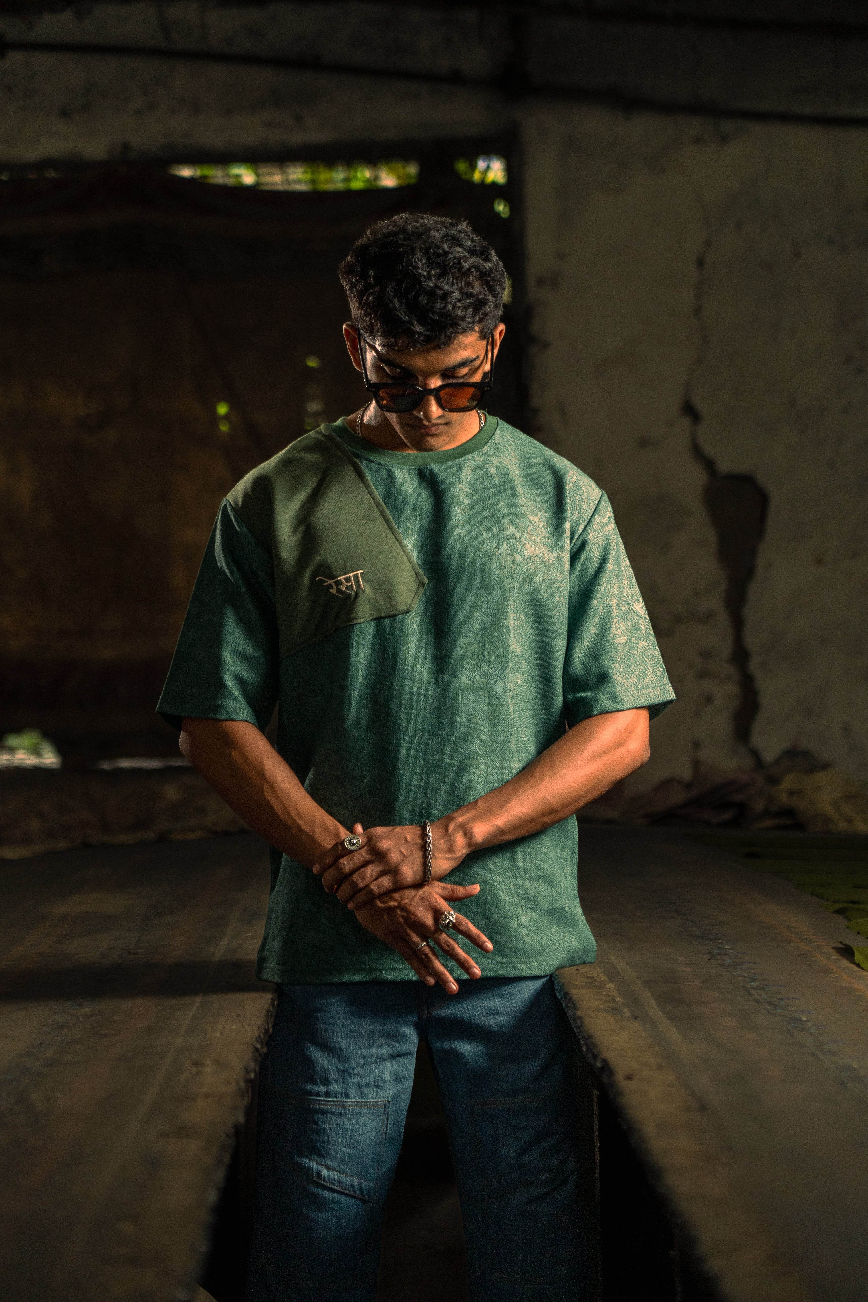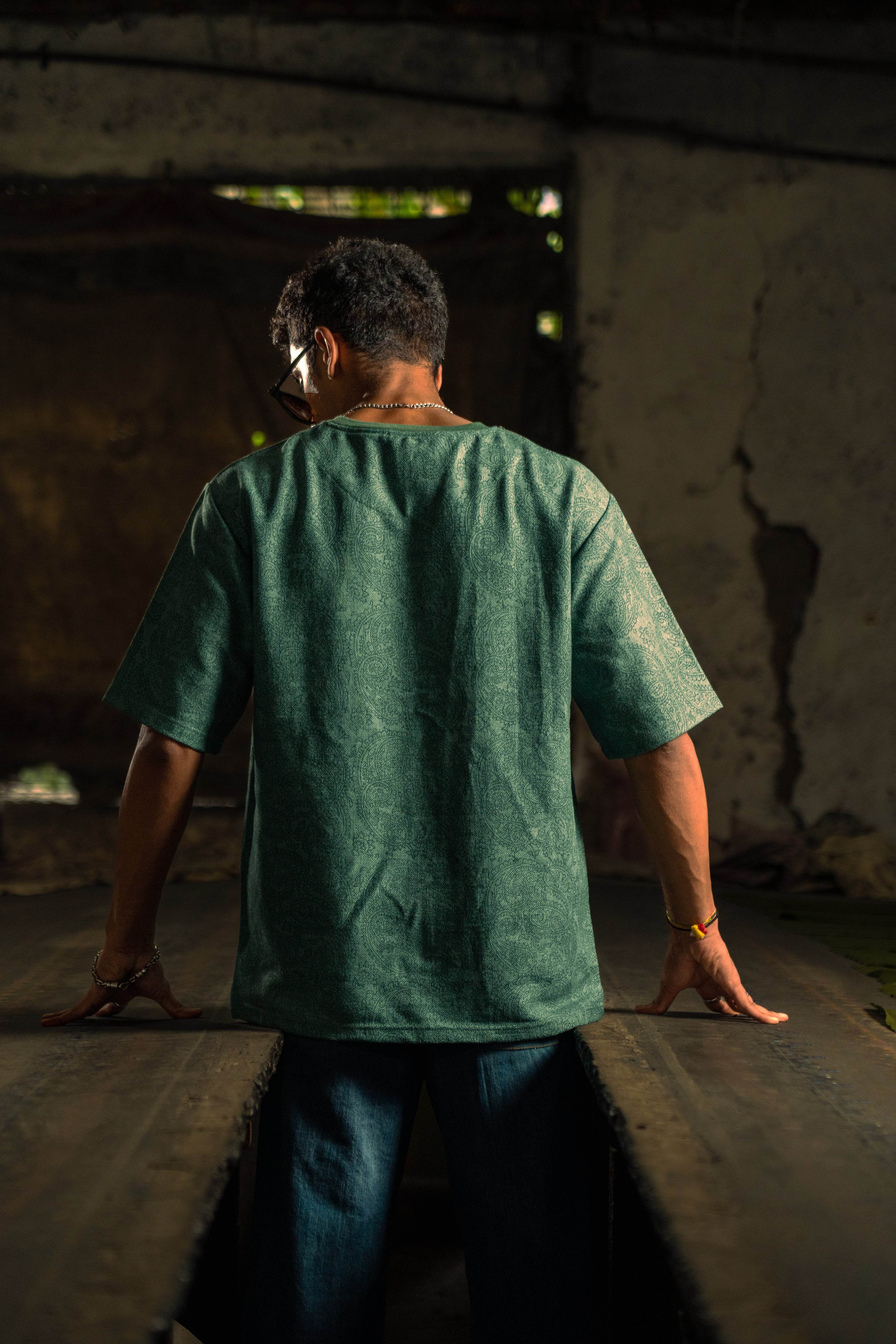intricate block prints and made from sustainable jute fabric in rich matcha shade. This
