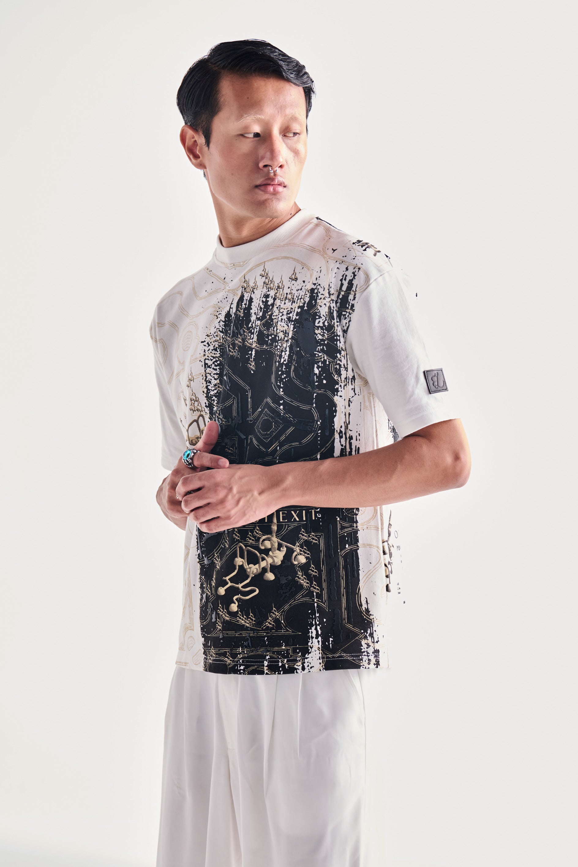 Versatile style for any occasion. The fabric boasts an impressive 220 GSM and is made of 100% cotton Terry. The oversized fit offers comfort and an effortlessly cool look. Plus, the t-shirt features an intricately crafted embossed leather patch, adding a touch of luxury to your wardrobe. To maintain this premium quality, we recommend dry clean only.