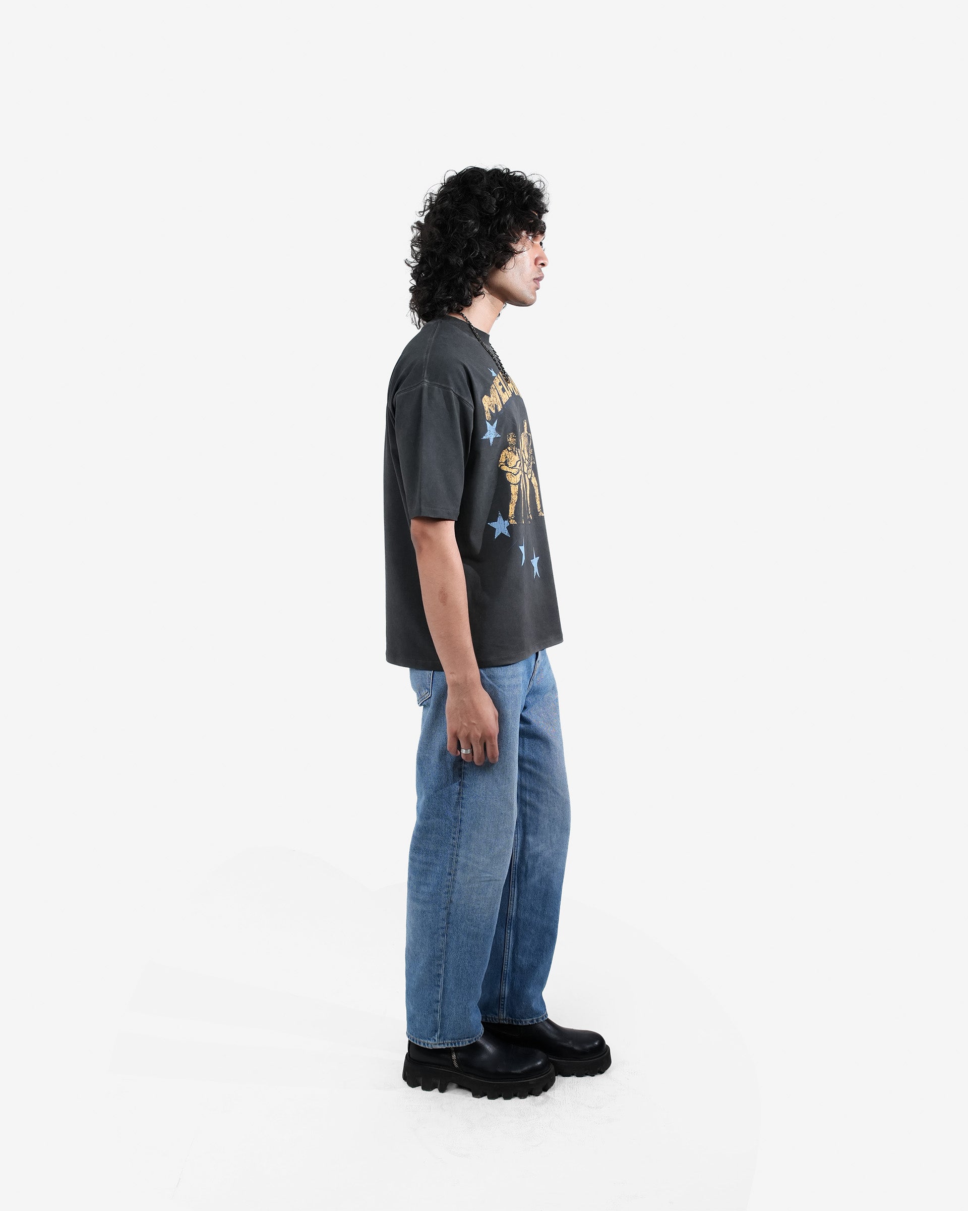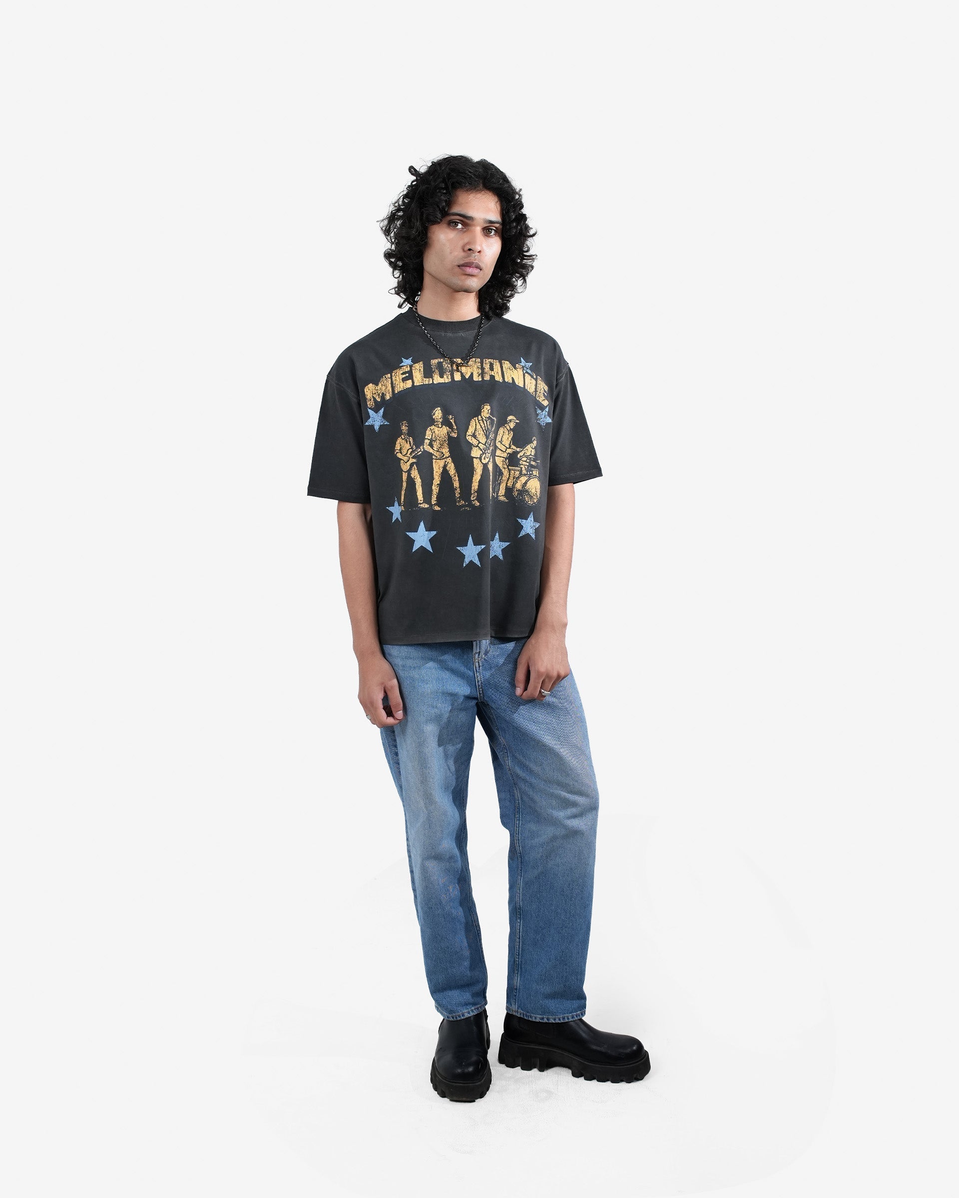 Melomanic - Black Pigment Washed Oversized Printed T-shirt