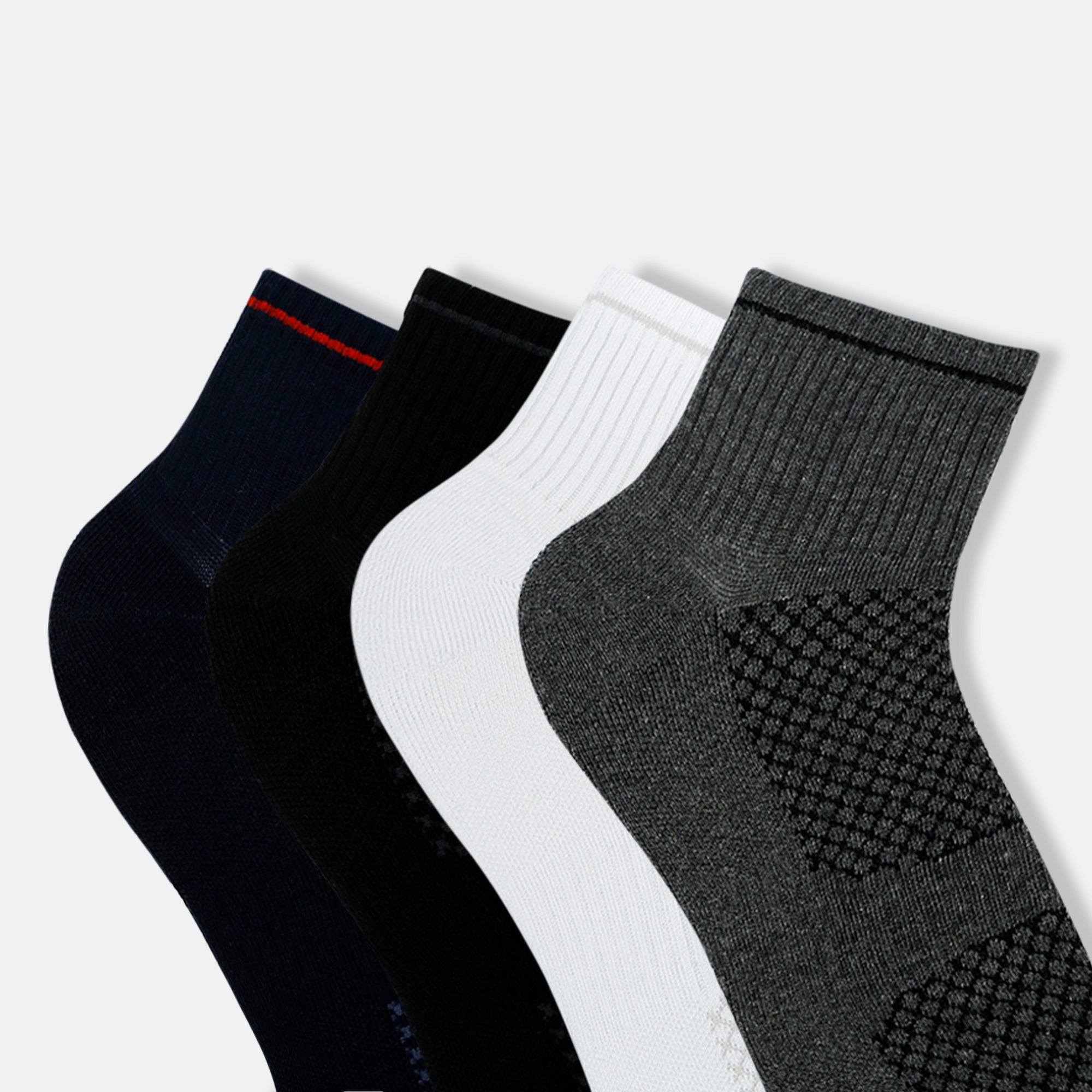 These premium Combed Cotton socks ensure a snug, comfortable fit with rib stitched cuff at the top, elastic arch support in the middle, and soft fabric finish at the bottom, providing you endless comfort.