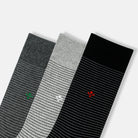 Optimally designed for maximum style and comfort. These elegant combed cotton socks in a subtle stripe pattern compliments your business and everyday look. These socks are ultimate comfort wear. The cotton helps absorb moisture and regulate temperature efficiently. Long-lasting comfort, extended durability, easy stretch for proper fit for formal wear in Black, L. Grey, & D. Grey.