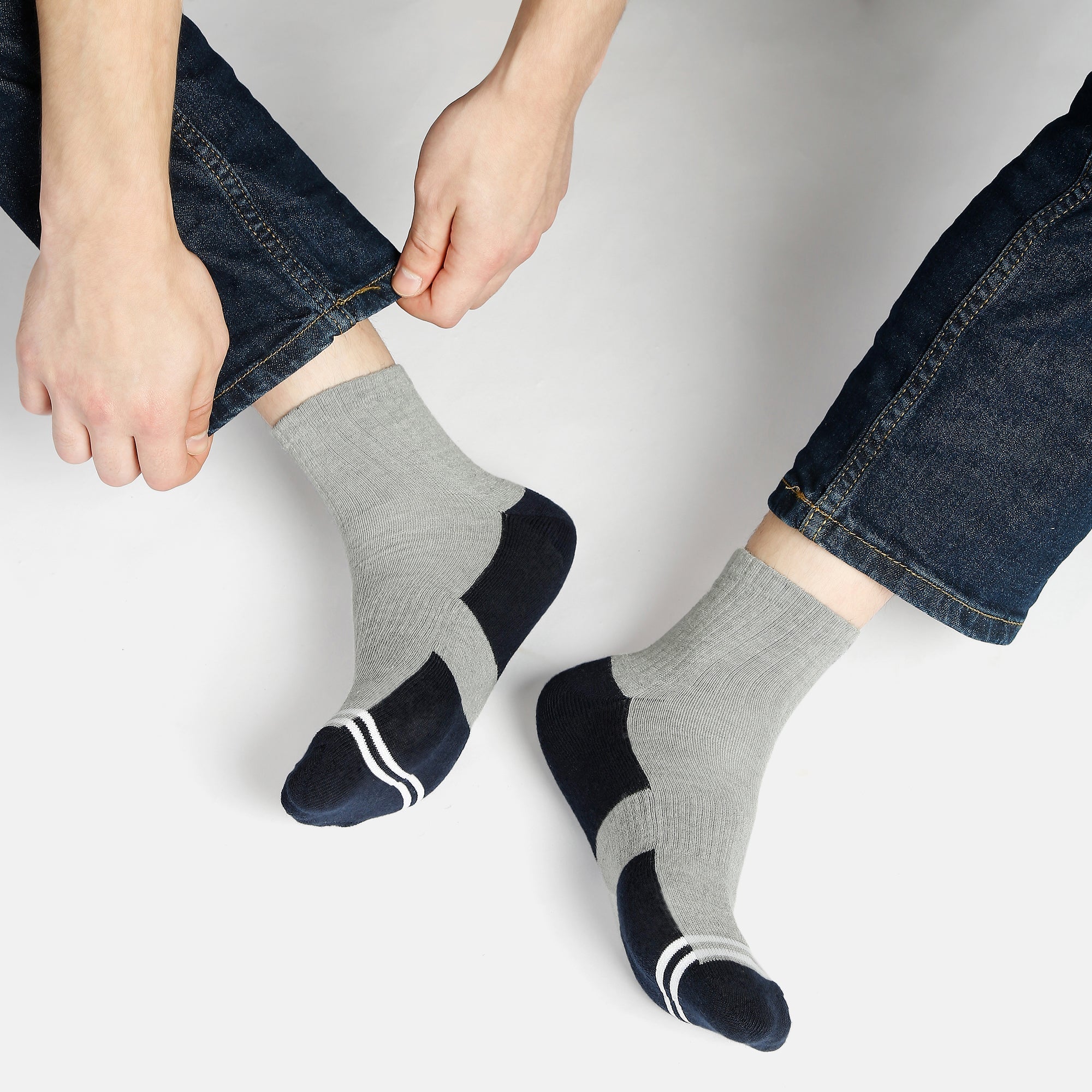 Get classic sporty high ankle socks by Socksxpress designed for men. This collection is made with finest combed cotton yarns and highest quality standards ensuring that each sock provides incredible comfort, breathability and durability. The socks are available in latest designs, trendy colors and block patterns which not only look good but also enhances look and feel of socks. Cushioned sole provides added support, and stability to feet and keeps you comfortable throughout the day. The socks are made up of cotton, which will keep your feet clean and fresh. The socks are suitable for both formal and everyday wear. These ankle socks are designed for feet comfort which looks formal and trendy.
