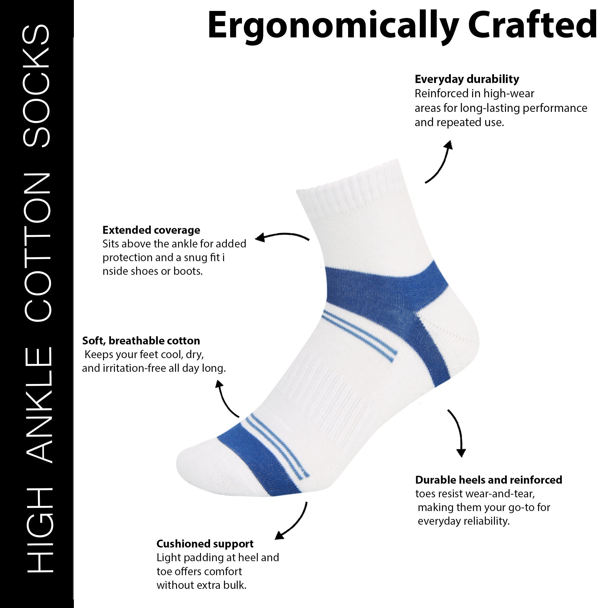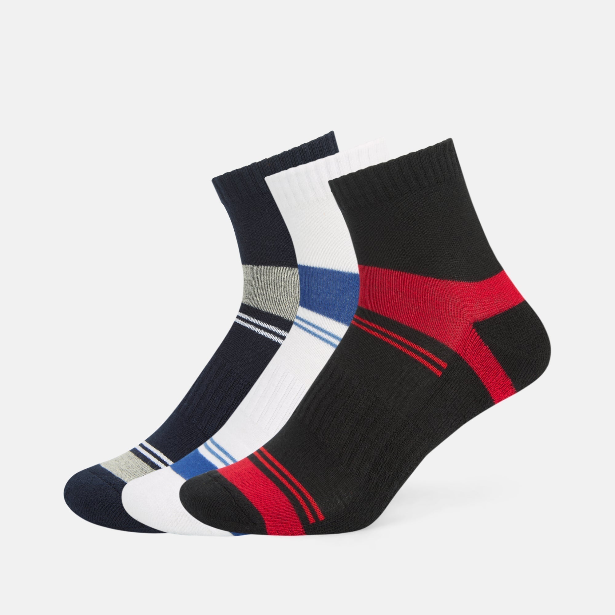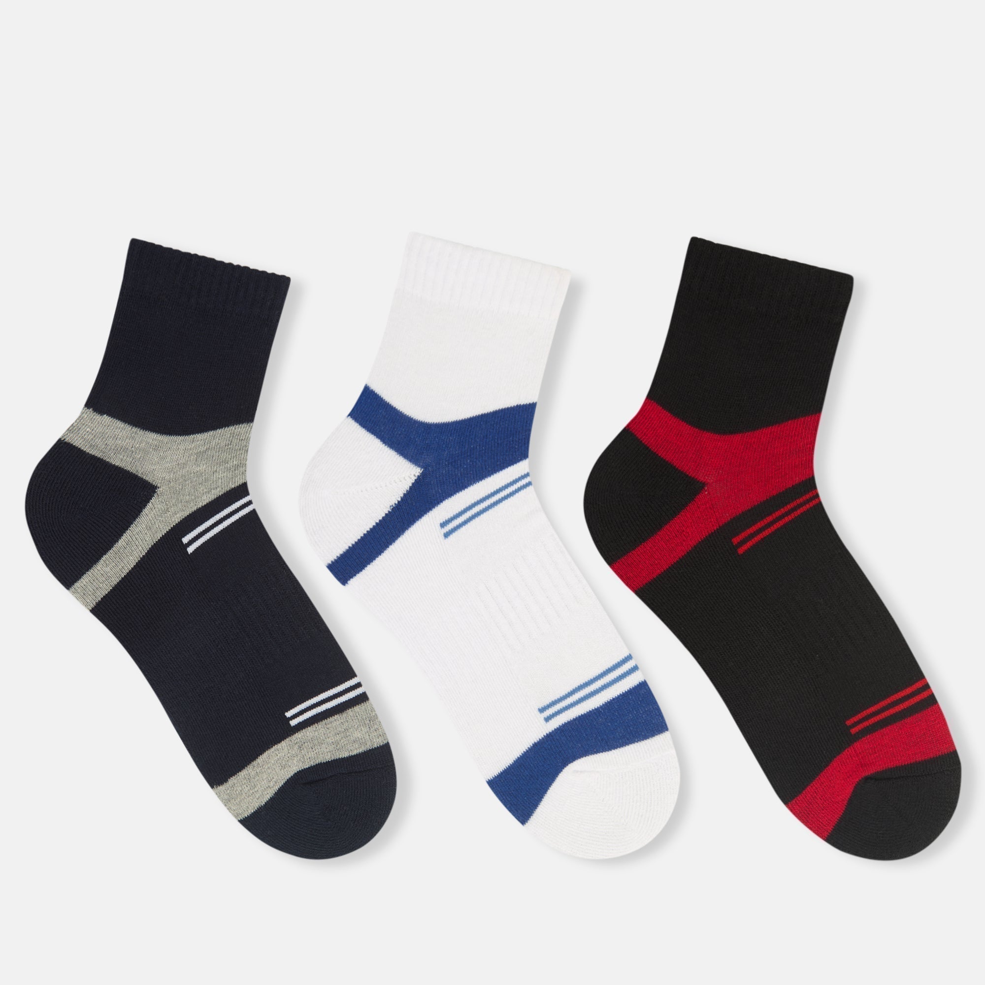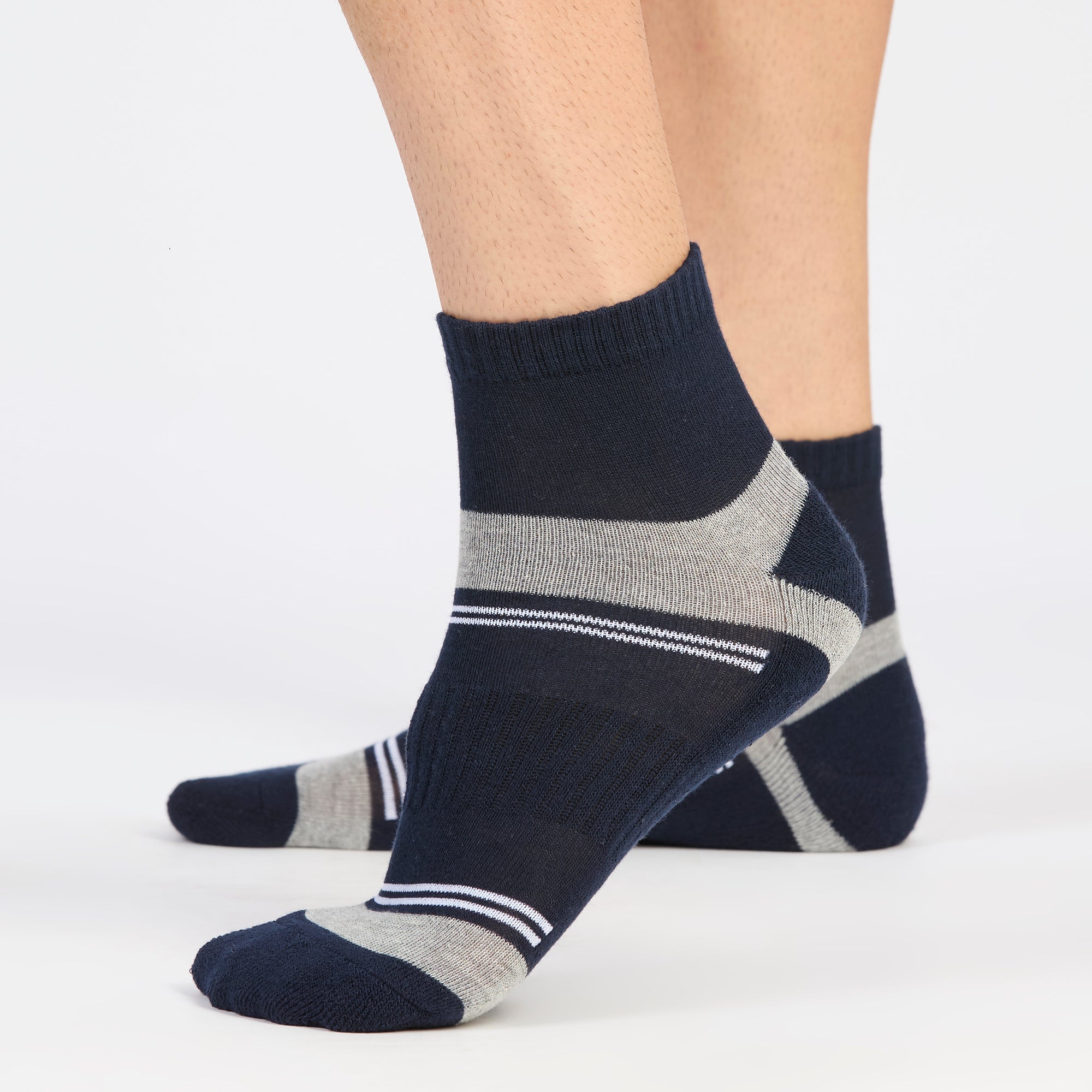 Get classic, sporty high-ankle socks by SocksXpress, designed for men. This collection is made with the finest cotton yarns and the highest quality standards, ensuring that each sock provides incredible comfort, breathability, and durability. Cushioned sole provides added support, and stability to feet and keeps you comfortable throughout the day. The socks are made up of cotton, which will keep your feet clean and fresh. The socks are suitable for both formal and everyday wear.