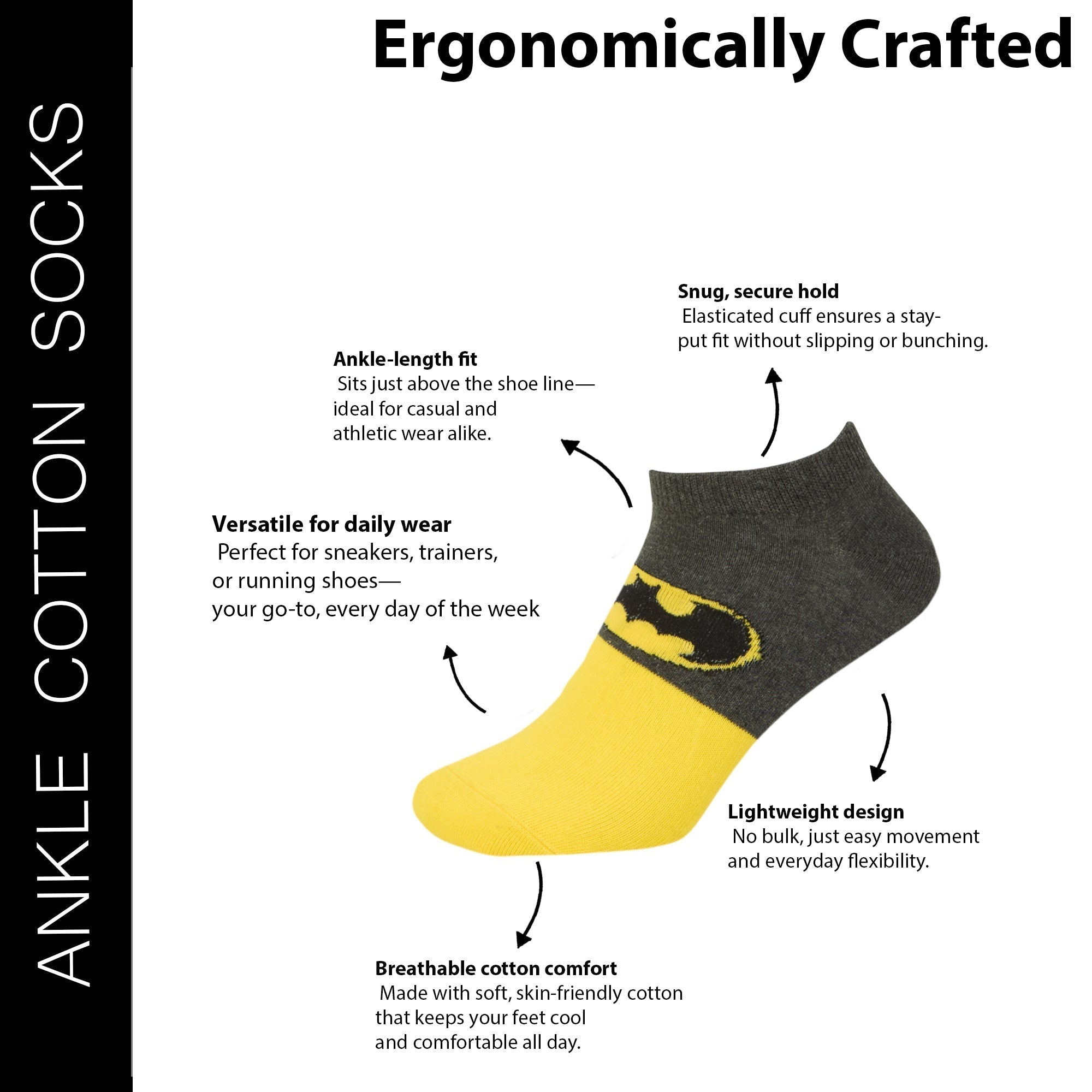 Made using a combination of combed cotton, nylon, spandex and elastic, these ankle socks ensure utmost comfort, stretchability and grip. The durable nature of the socks will make sure the superhero icons stay in shape.
