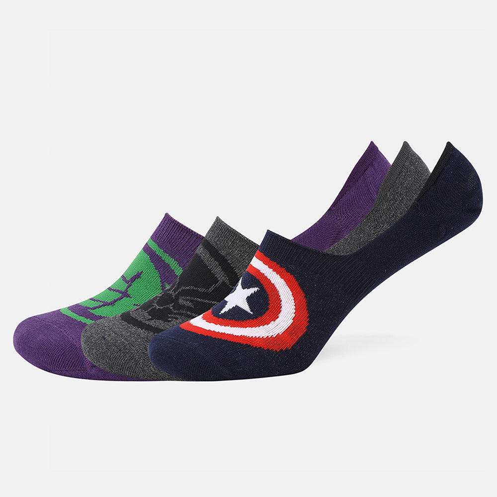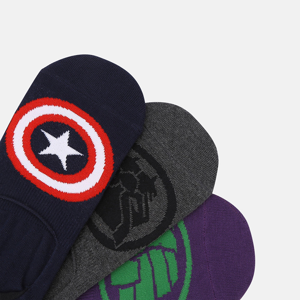 Smash your day in style with superhero-themed loafer socks featuring Hulk, Captain America, and Black Panther! Crafted from a premium blend of combed cotton, nylon, spandex, and elastic, these socks deliver unbeatable comfort, stretchability, and grip. Designed for everyday heroes, they stay hidden in your loafers while packing a punch of superhero vibes.