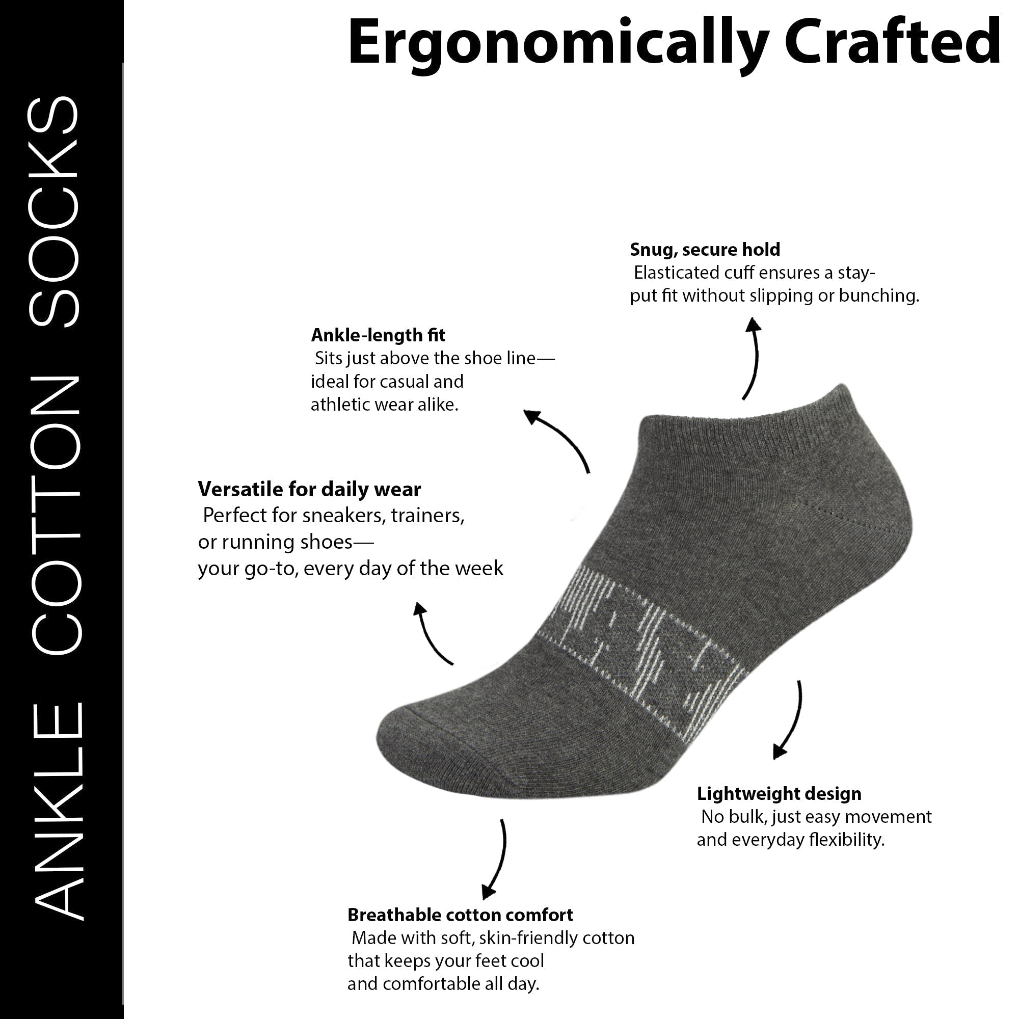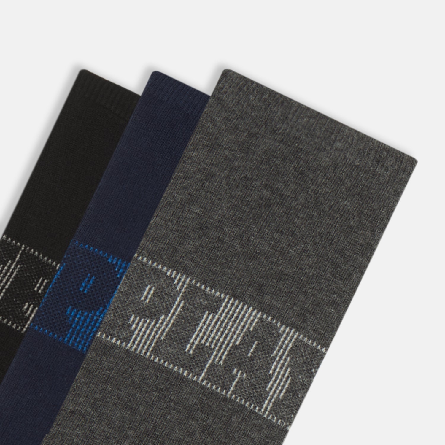 | Designed with a clean horizontal logo band, these Playboy ankle socks give a sleek upgrade to your basics. Made from breathable cotton with a reinforced arch, they're built for movement and meant to be seen. A versatile set in black, grey, and navy - iconic from every angle. |