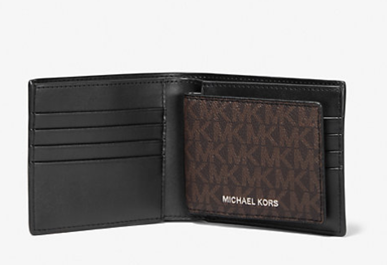 Michael Kors Cooper Logo Billfold Wallet With Passcase Brown-Black