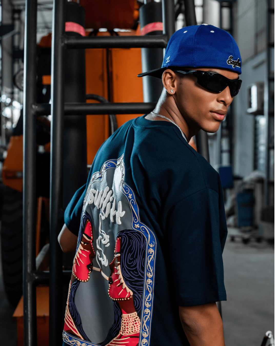 The Lady Smoke Blue Tee captures the essence of quiet power and effortless style. Dyed in a deep smoke blue and finished with a bold puff print, this tee is made to stand out without shouting.
