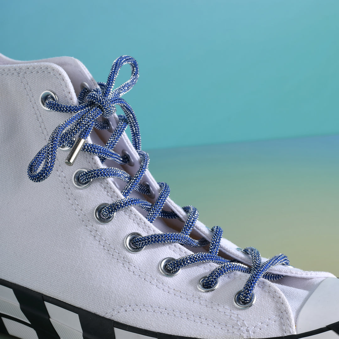 Add a touch of sparkle to your sneakers with our Lurex Covered Rope Shoelaces. These laces are made from high-quality materials that are both durable and vibrant. The rope-style design adds a unique texture to your shoes, while the shimmering Lurex material catches the light for a subtle yet eye-catching effect. Perfect for adding a touch of glamour to your everyday footwear or making a statement on a night out, these laces are a must-have for any fashion-forward sneakerhead.