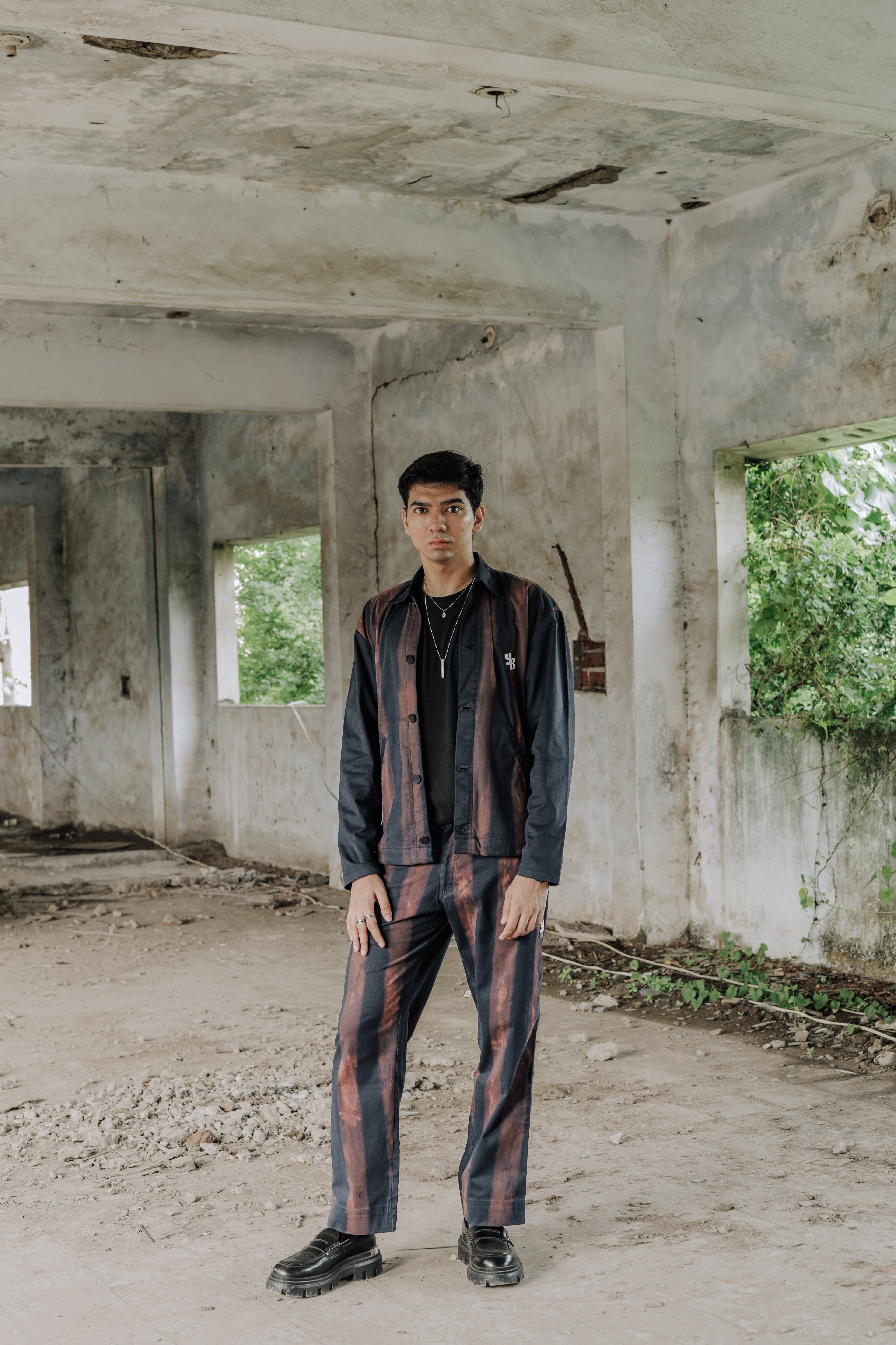 The Midnight Rust Set is a crafted clash of comfort and rebellion, defined by hand-painted bleach strokes that make every piece one-of-a-kind. The jacket stands out with its arc-structured back detail and soft cotton lining beneath a raw exterior, while the pants amplify individuality with a unique worn-in texture and the signature bone pocket at the back. Together, they form a bold statement of chaos, craft, and fearless identity.