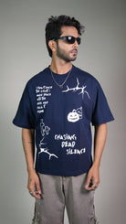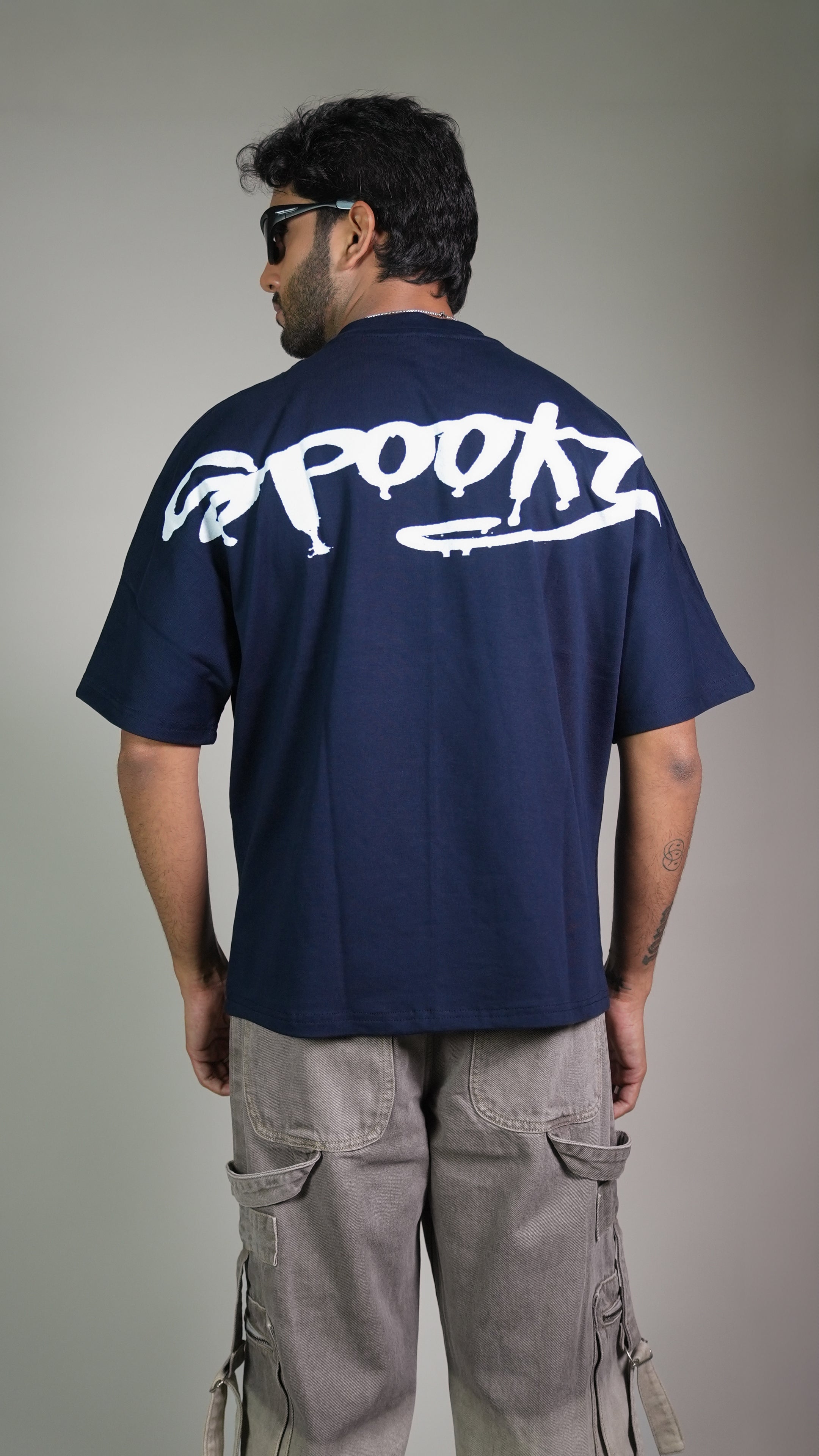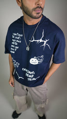 This navy tee taps into spooky aesthetics with a clean, seamless-shoulder silhouette and a bold horror-inspired graphic. Crafted from 300 GSM heavyweight single jersey cotton, it blends style, comfort, and a dark twist. A tee for those who love a little mystery in their fits.