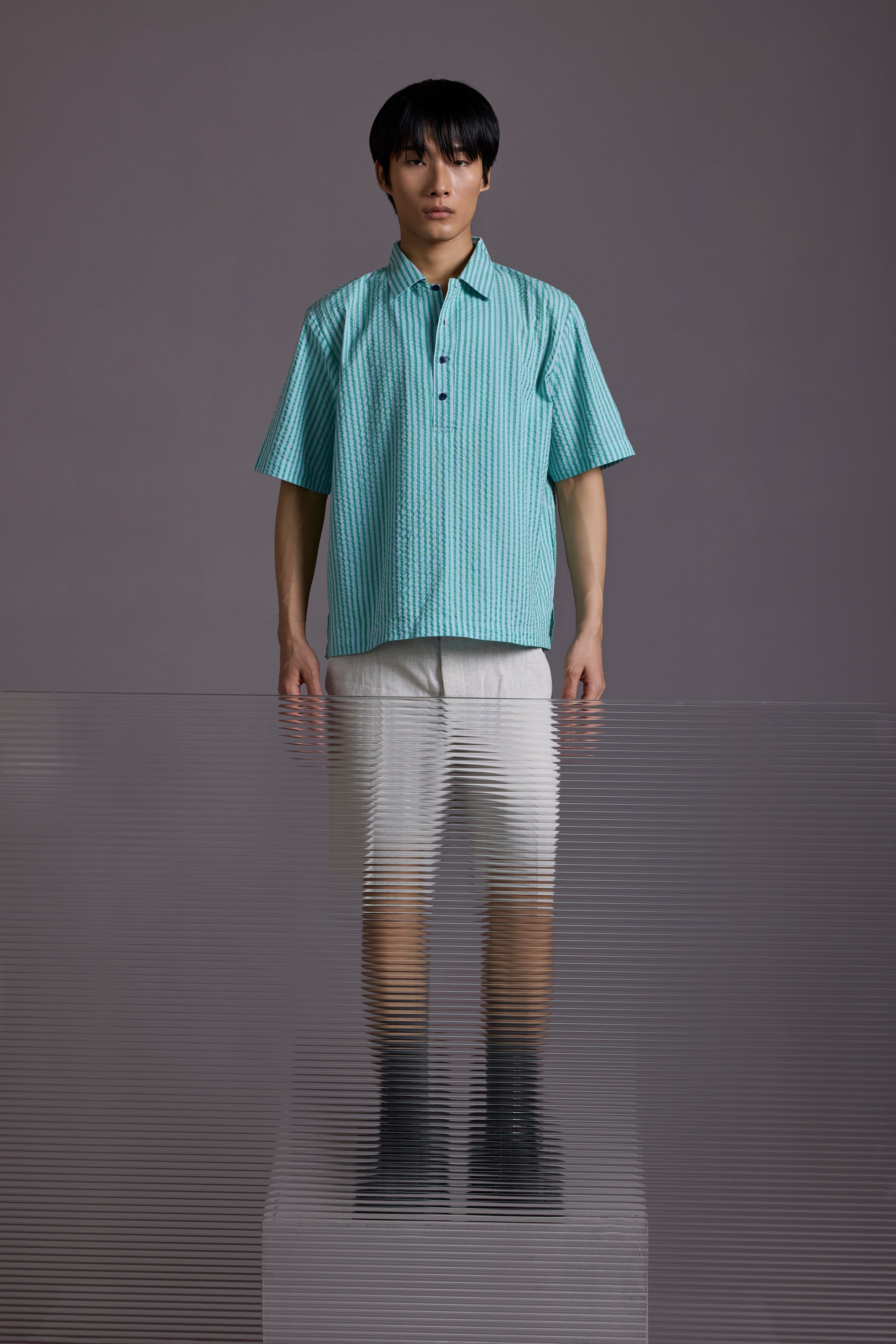 A fresh spin on warm-weather essentials, the Mint Stitch Popover Shirt blends breathable structure with visual intrigue. Crafted from a lightweight stitched cotton fabric, it features a relaxed popover placket with contrast buttons for a clean, standout look.