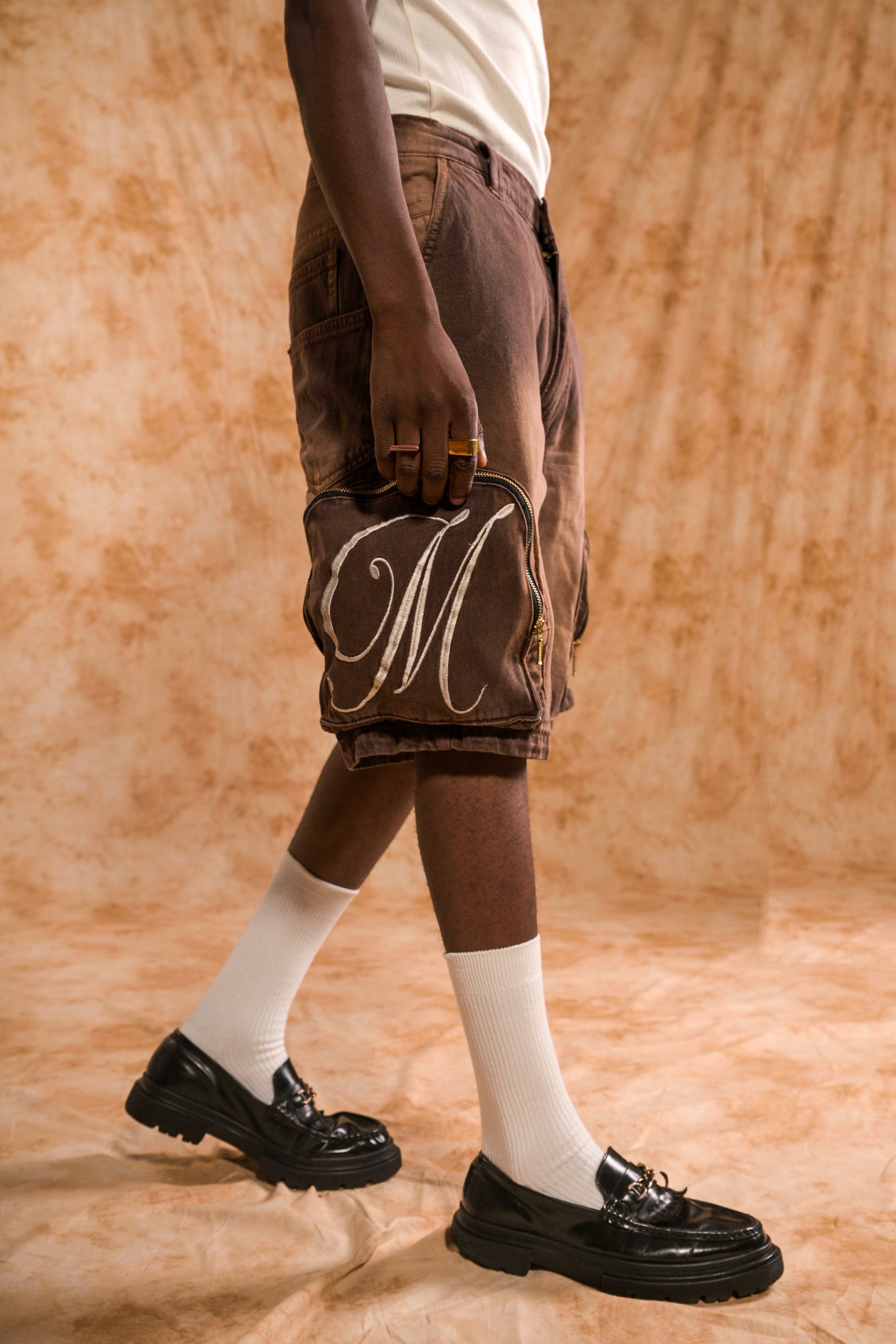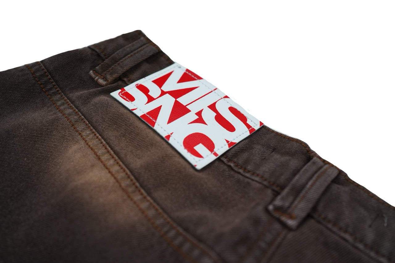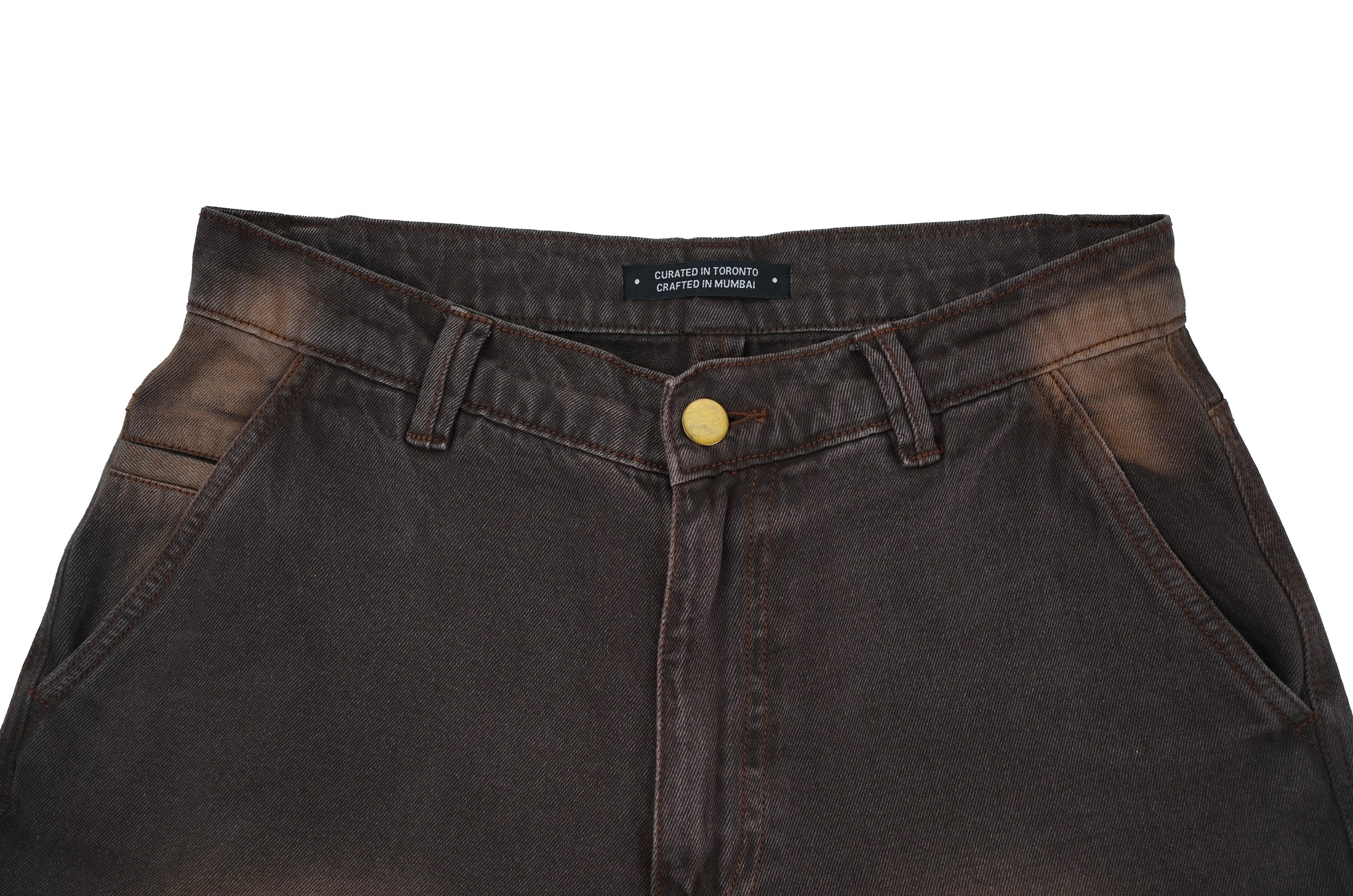 THIS TIME IN A BEAUTIFUL MOCHA BROWN COLORWAY WITH A SUBTLE SAND WASH ON THE FRONT AND BACK. THIS PAIR FEATURES OVERSIZED, PUFFER POCKETS ON EACH SIDE—DESIGNED TO FIT EVEN A SMALL WATER BOTTLE—AND EMBELLISHED WITH OUR SIGNATURE 'M' AND 'T' LOGOS FOR A DISTINCTIVE, ELEGANT TOUCH. GOLDEN HARDWARE RUNS THROUGHOUT, PERFECTLY COMPLEMENTING THE WARM BROWN TONES. THE DURABLE OVERLOCK STITCHING ENSURES LONG-LASTING WEAR, WHILE THE WAISTBAND CARRIES OUR "TORONTO/MUMBAI" LABEL IN BLACK. ON THE BACK, A BOLD RED AND WHITE DENIM TAG MAKES A STATEMENT, AND TWO OVERLAPPING POCKETS ON THE RIGHT SIDE DELIVER BOTH STYLE AND FUNCTION.