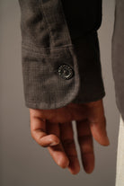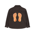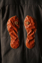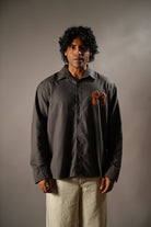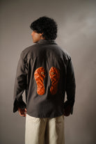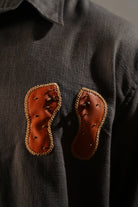 Design - Charcoal shirt with leather sole motifs, block-embroidered inspired by age-old Indian footwear