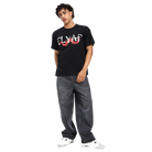Loose-fittining t-shirt in black with a round neckline and short sleeves.Puff print on the front and back.