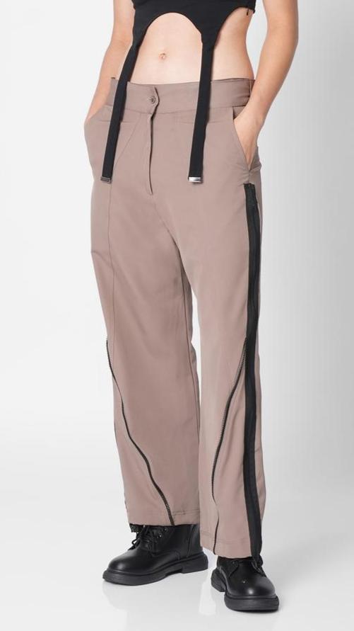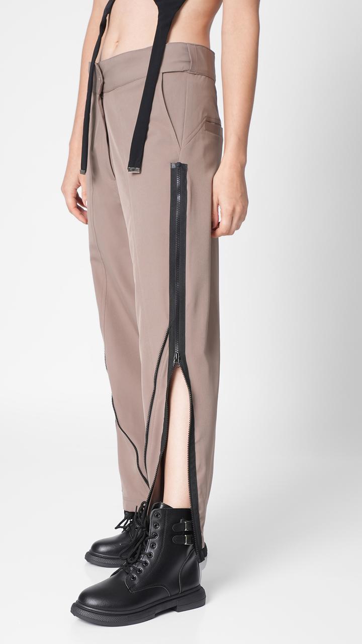 - Contrast patched zipper on either sides for open slit