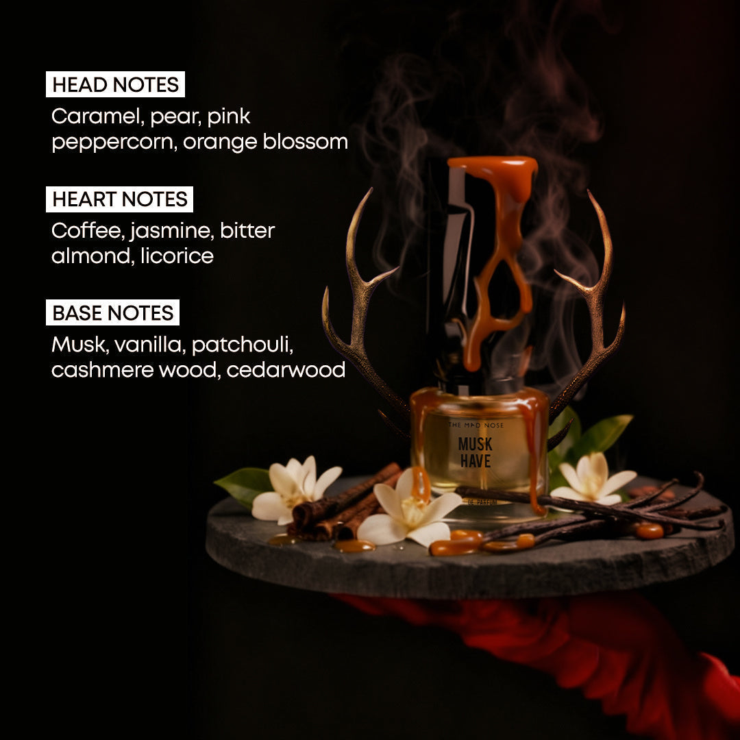 A luxurious blend of pear, coffee, and vanilla, Musk Have offers over 10 hours of lasting allure. Perfect for day or night, it’s your ultimate fragrance for unforgettable charm. Seduction in a bottle? You musk try it!