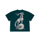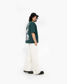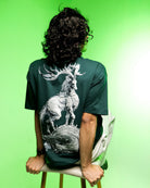 Crafted from ultra-premium Cotton Spandex Terry Looper, Mythical Stag is a 260 GSM oversized tee designed for those who wear art on their back and confidence on their sleeve. The forest green backdrop sets the stage for an epic hand-rendered graphic of a mythical deer-like creature — with intricate antlers, flowing textures, and surreal presence. The front features a detailed micro-printed Khaaki logo, echoing the mystique of the design.