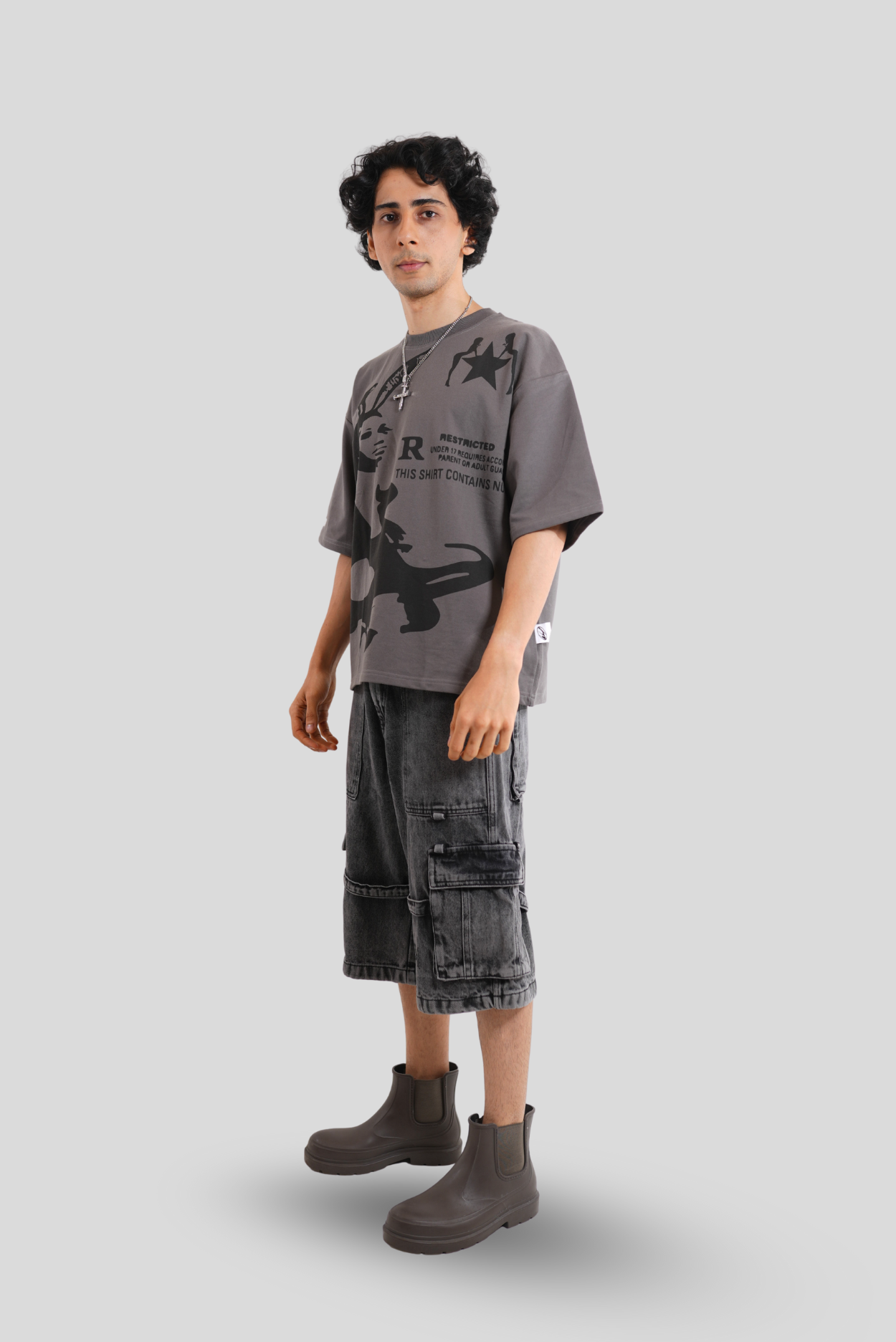 Uncensored. Unfiltered. Unapologetic. The NAKED tee is a raw visual commentary straight from the underbelly of pop culture. Featuring bold, shadowy silhouettes and R-rated motifs across the front, this washed grey heavyweight tee blurs the line between fashion, satire, and social rebellion. With distorted female figures, bold warnings, and graphic energy, it reads like a warning label you wear loud. The back keeps it clean with the MANACA insignia — low key, but never silent.
