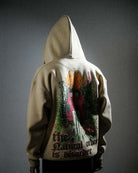 The Law of Nature hoodie is crafted from premium 400 GSM Cotton 3-Thread Fleece with a double silicone finish, giving it a smooth, luxurious, and heavyweight feel. The beige tone is clean and elevated, bringing a refined streetwear aesthetic to an oversized zip-up silhouette.