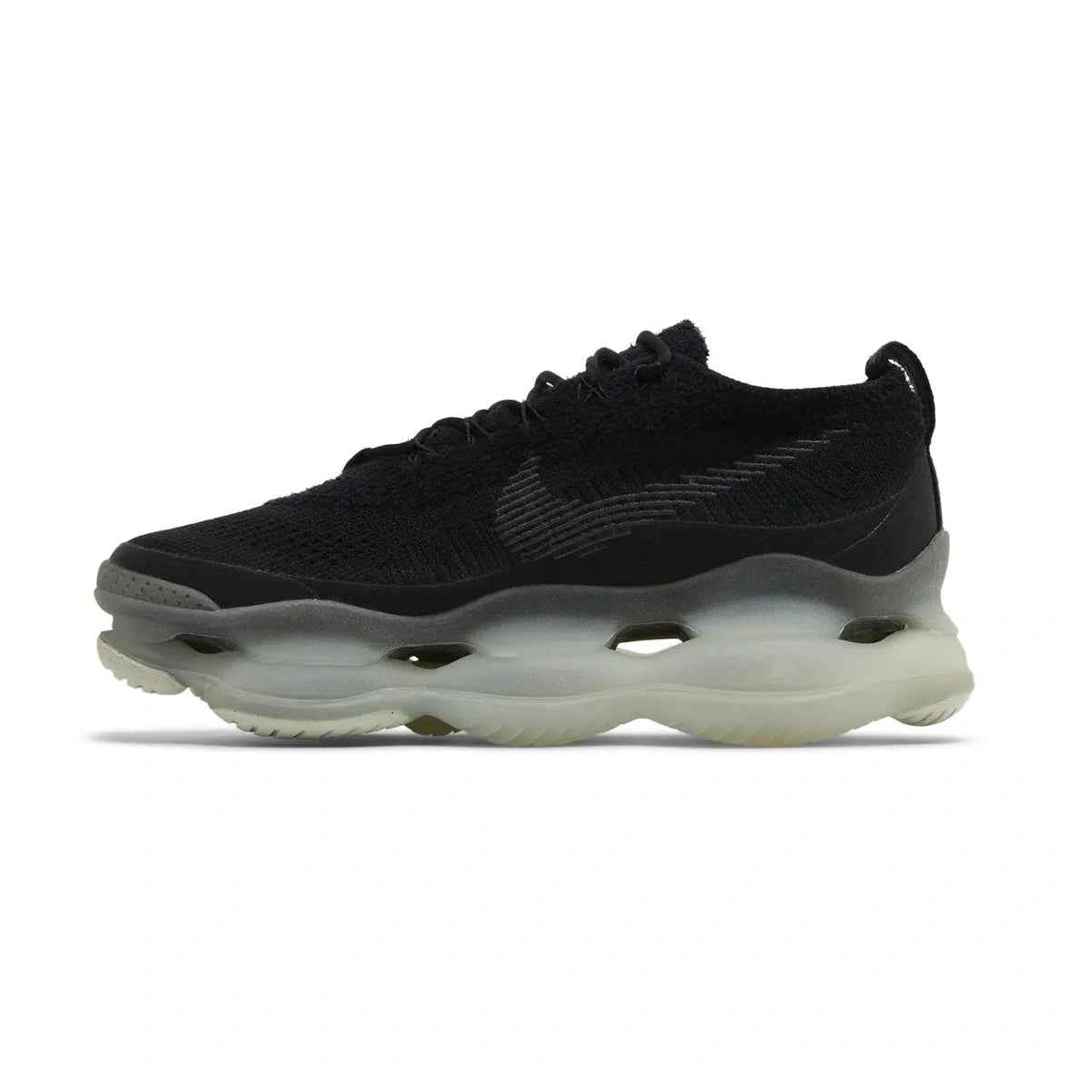 The Nike Air Max Scorpion FK in Black Anthracite offers a sleek blend of style and comfort, featuring Flyknit construction for a lightweight, breathable fit. Its visible Air Max unit delivers responsive cushioning, ideal for all-day wear. The design’s subtle anthracite tones provide a modern, versatile look suitable for both casual and active settings. Durable rubber outsole ensures lasting traction and stability, making this model a reliable choice for performance and urban style.