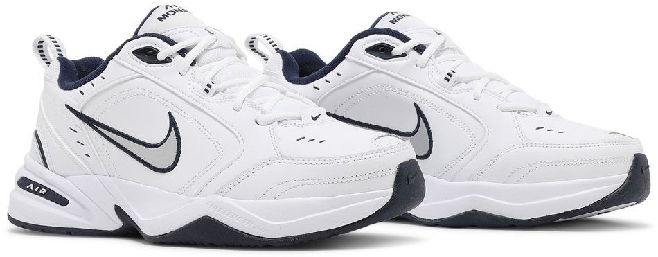 The Nike Air Monarch IV 'White Navy' combines timeless court-inspired design with everyday wearability. This classic silhouette features a premium leather upper in crisp white with navy accents, delivering durability and a clean aesthetic that transitions seamlessly from casual wear to light athletic activity. The cushioned midsole provides reliable comfort for all-day support, while the iconic Monarch profile ensures instant recognition. A versatile choice for those who appreciate heritage sneaker styling with functional performance.