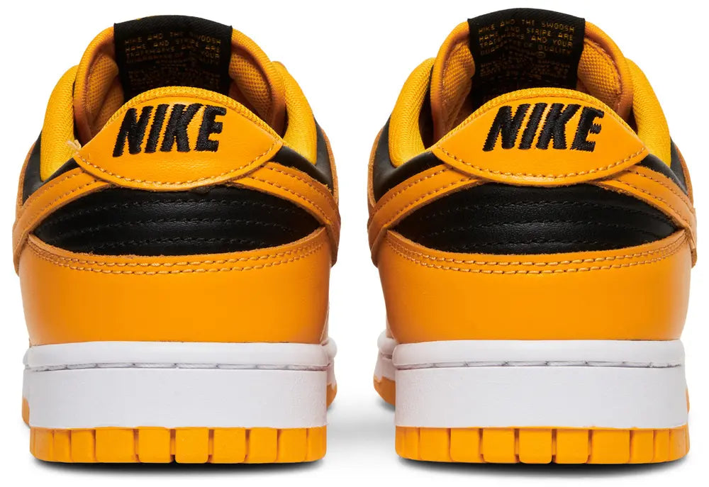 The Nike Dunk Low ‘Goldenrod’ delivers a low-profile iteration of the shoe’s OG ‘Iowa’ colorway from the vaunted ‘Be True to Your School’ series from 1985. Like the original high-top edition, the shoe features a simple two-tone color scheme throughout the leather upper, highlighted by a solid black base with contrasting yellow overlays. Standard branding elements include a woven Nike tag atop the black nylon tongue and a Nike wordmark embroidered on the heel tab. The sneaker sits on a durable rubber cupsole that pairs white sidewalls with a yellow rubber outsole.