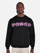 No Peace With EVIL - Black Embroidered Drop Shoulder Men Oversized Sweatshirt
