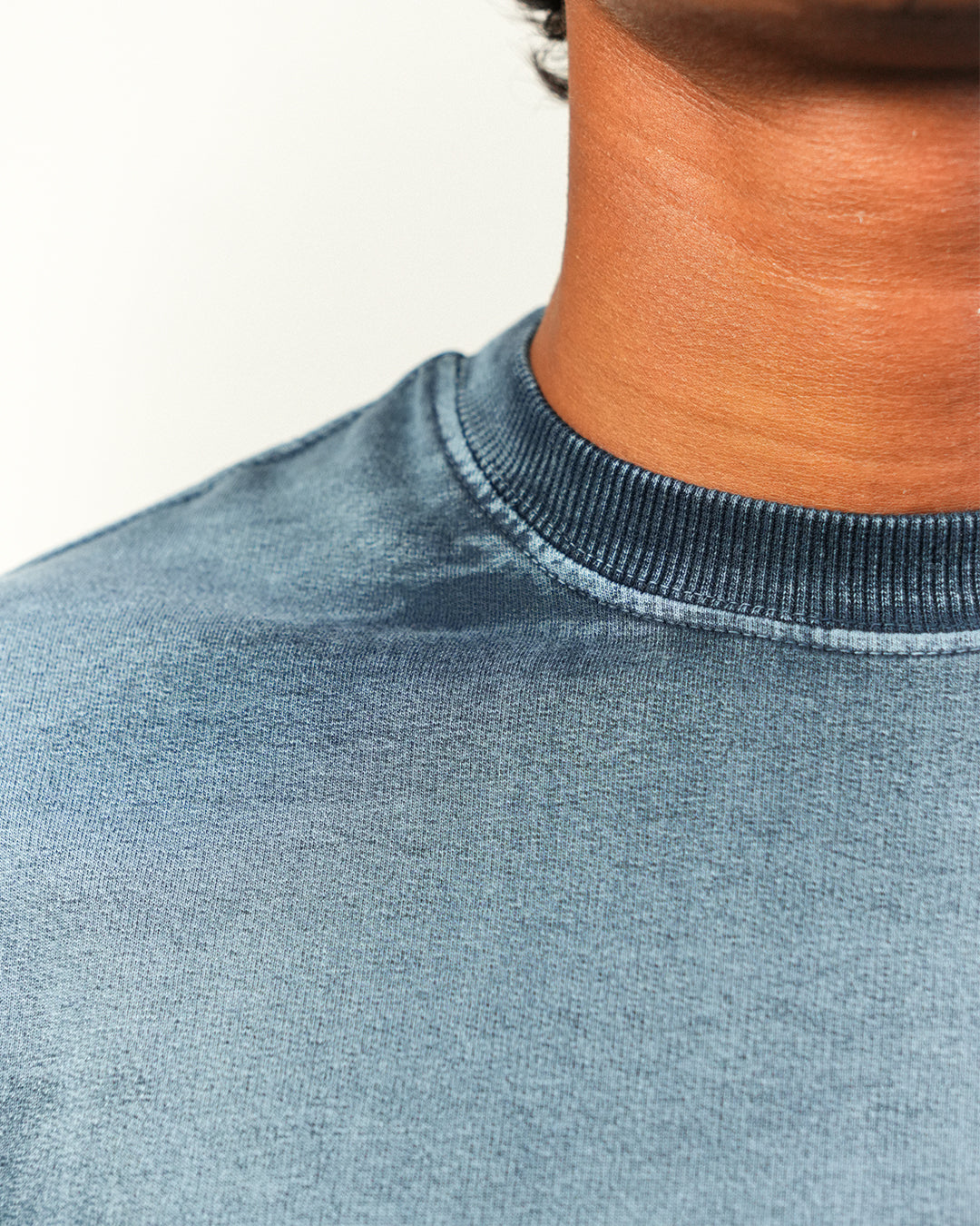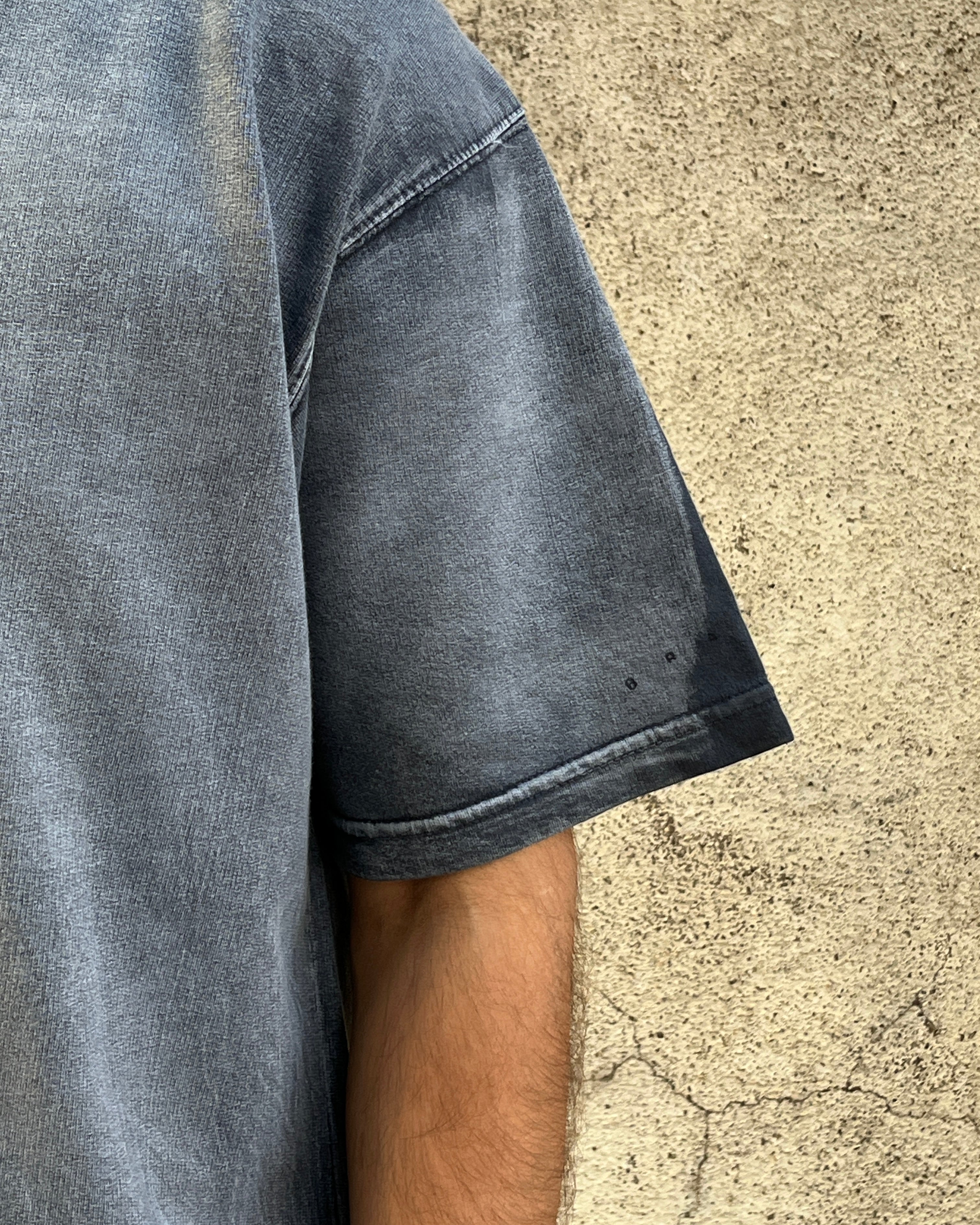 The Ocean Blue hue is achieved through a unique hand-washing technique, giving it a distinct and sophisticated look. Its oversized box/crop fit ensures a relaxed and trendy silhouette, perfect for any casual occasion.