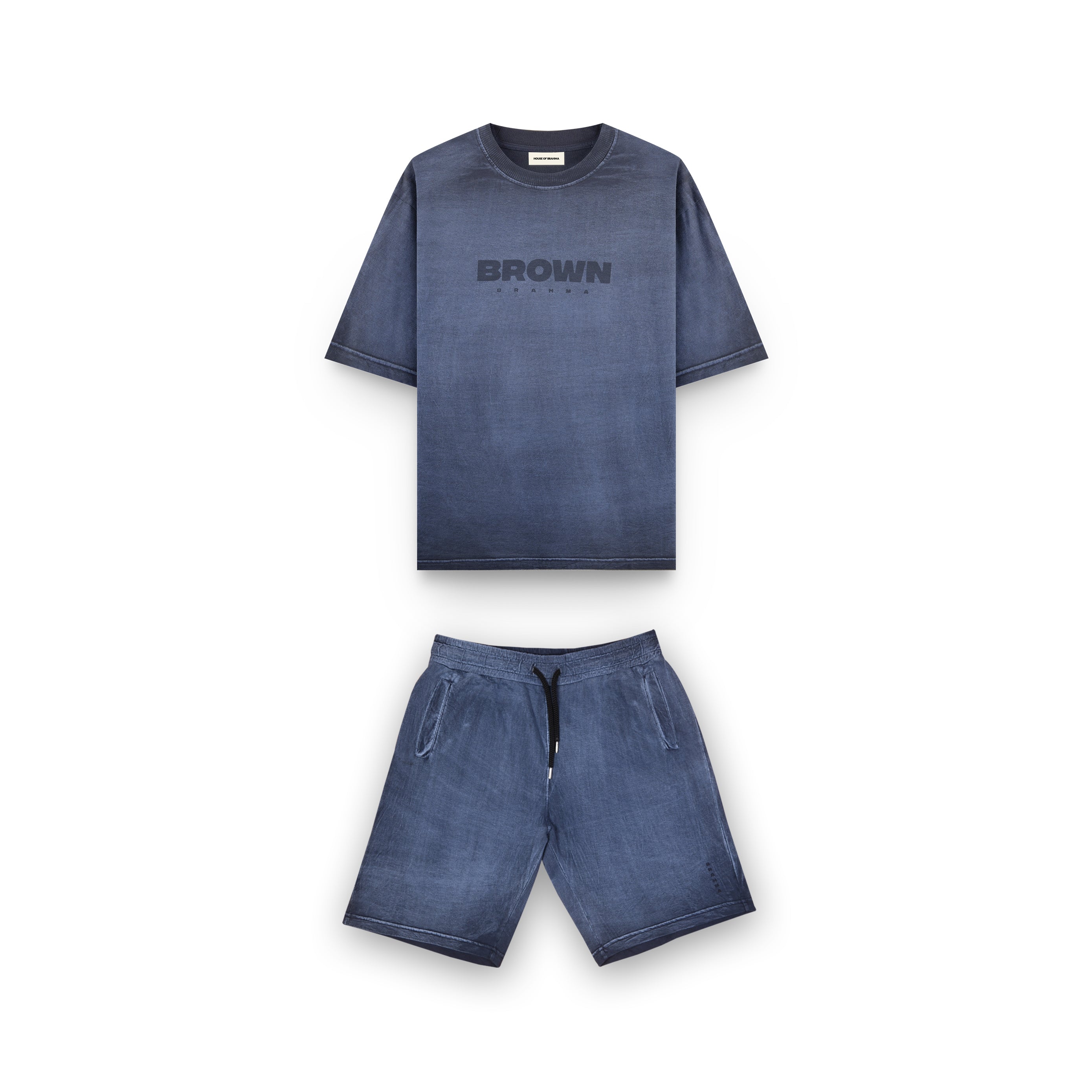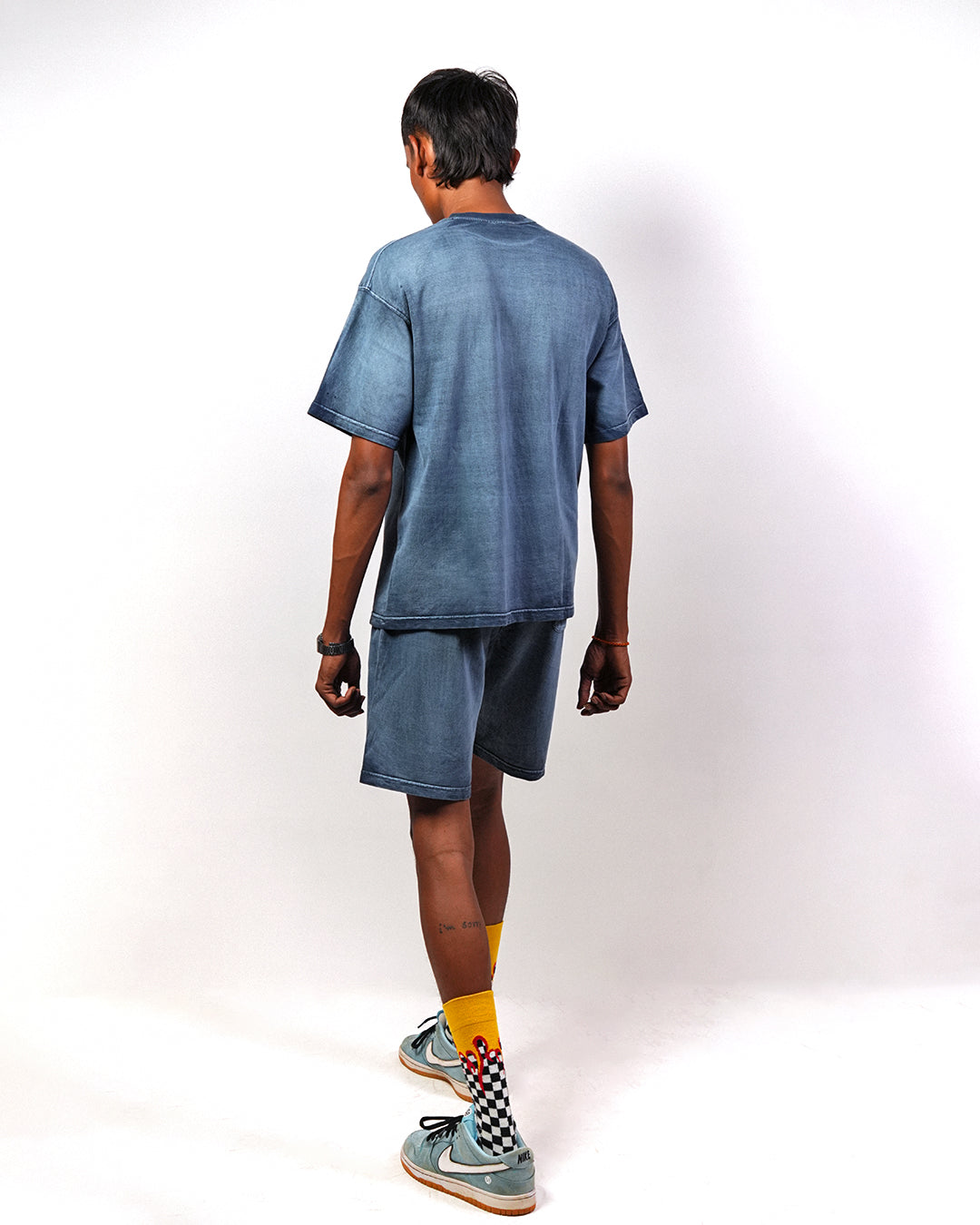 Introducing Brahma's cord-set for summer: a stylish T-shirt and shorts duo featuring a trendy wash effect. Crafted for comfort and style, the set is perfect for those sunny days. Wear the emblem of Brahma with pride and embrace the season with flair.