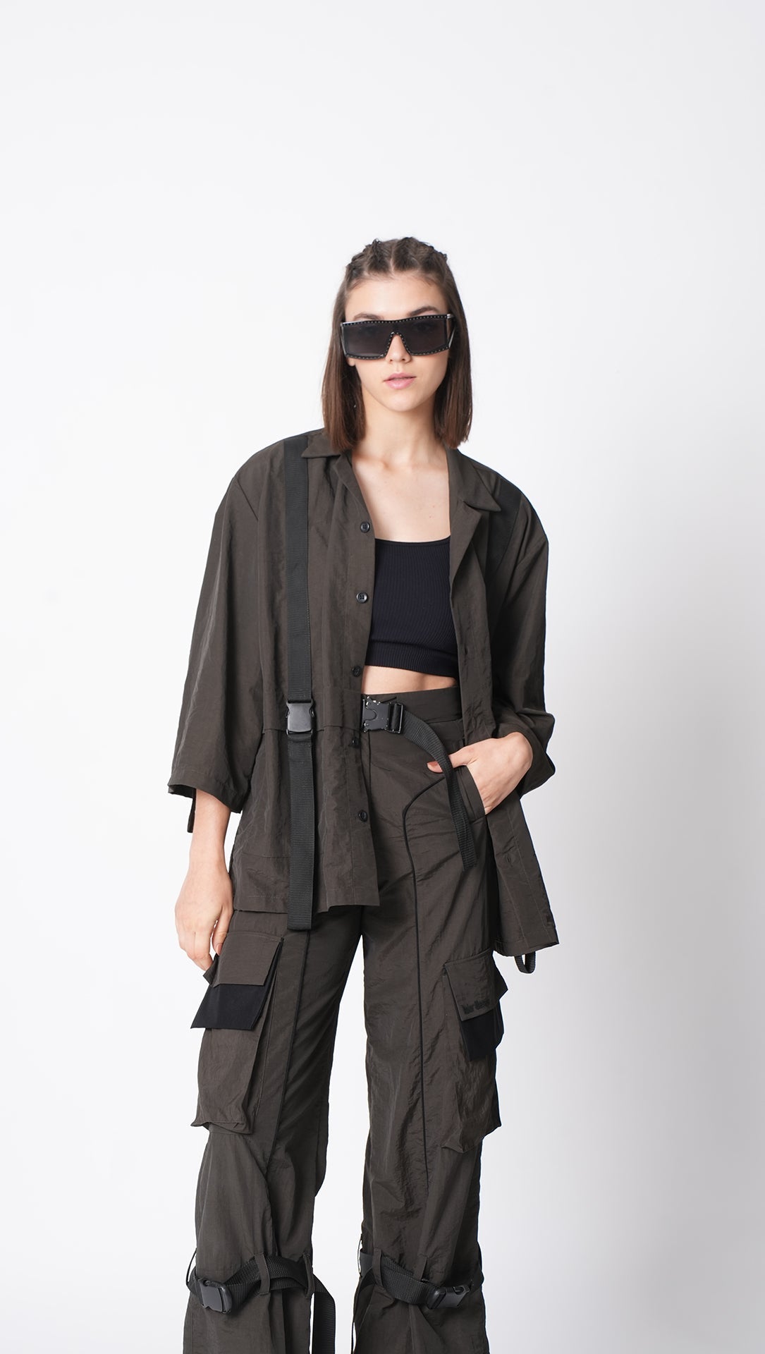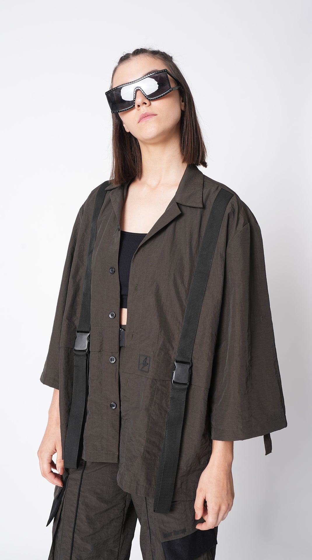 - Oversized shirt with running twill tape and buckle detail